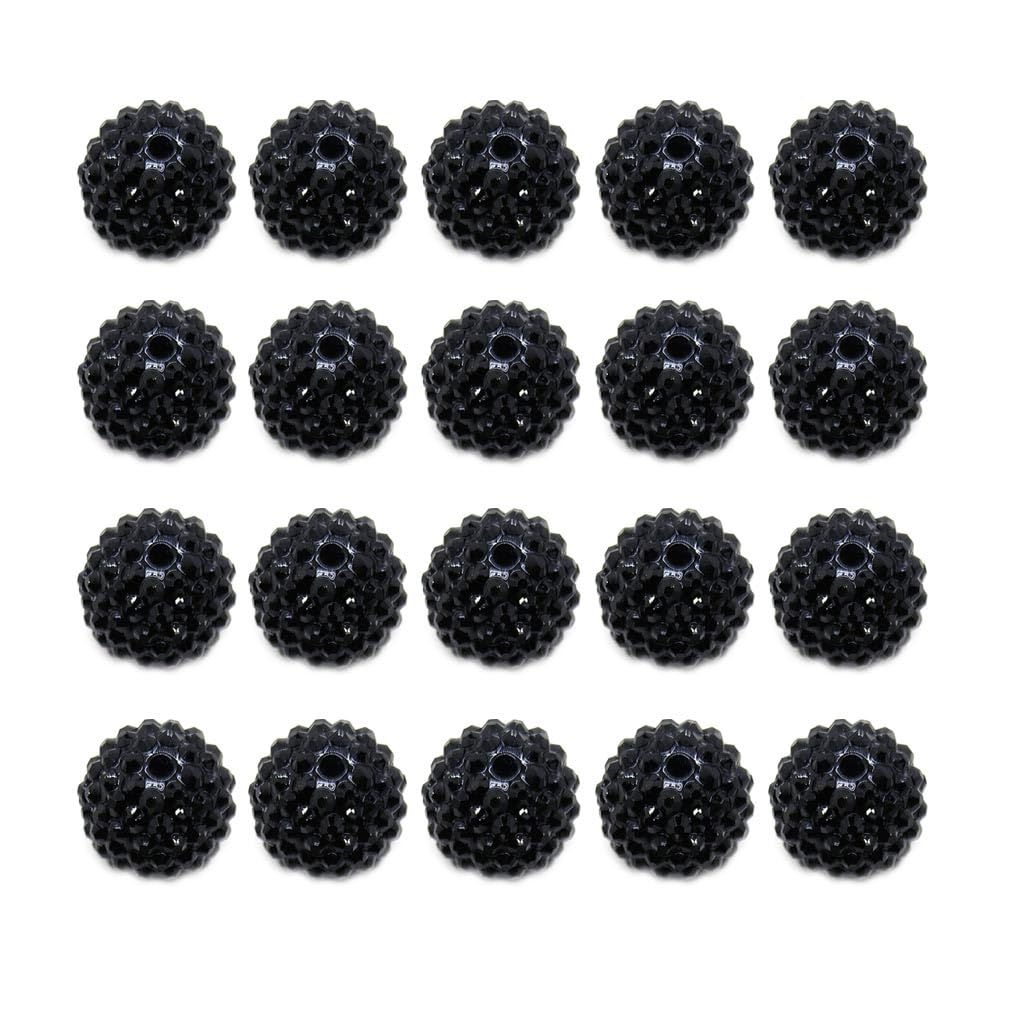 Rhinestone Beads, 10 Colors Sparkly Crystal Ball Beads, 20mm Diameter, DIY Jewelry Making (Black)