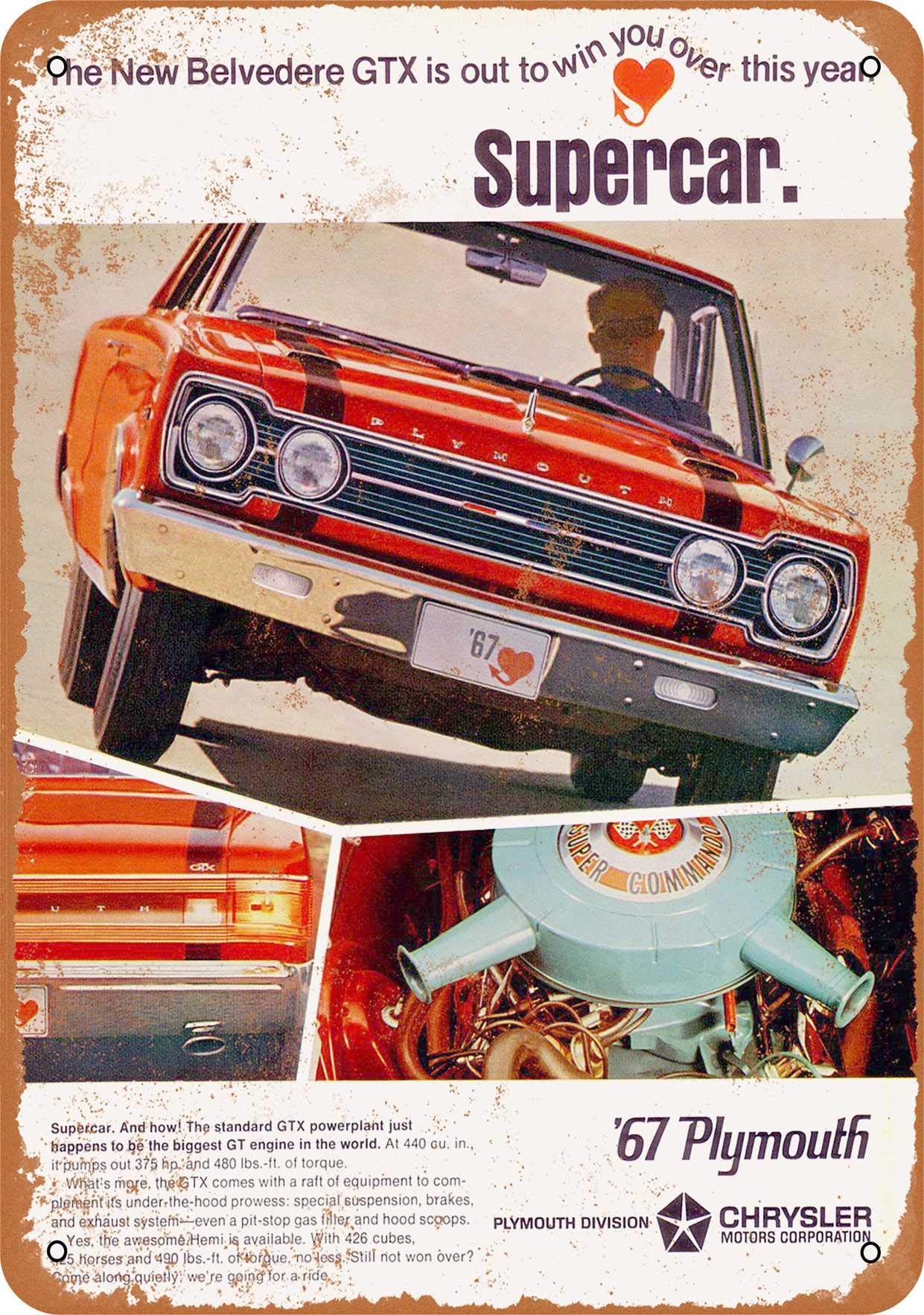 RetroRust 7 x 10 METAL SIGN - 1967 Plymouth Belvedere GTX 440 Supercar - Vintage Rusty Look