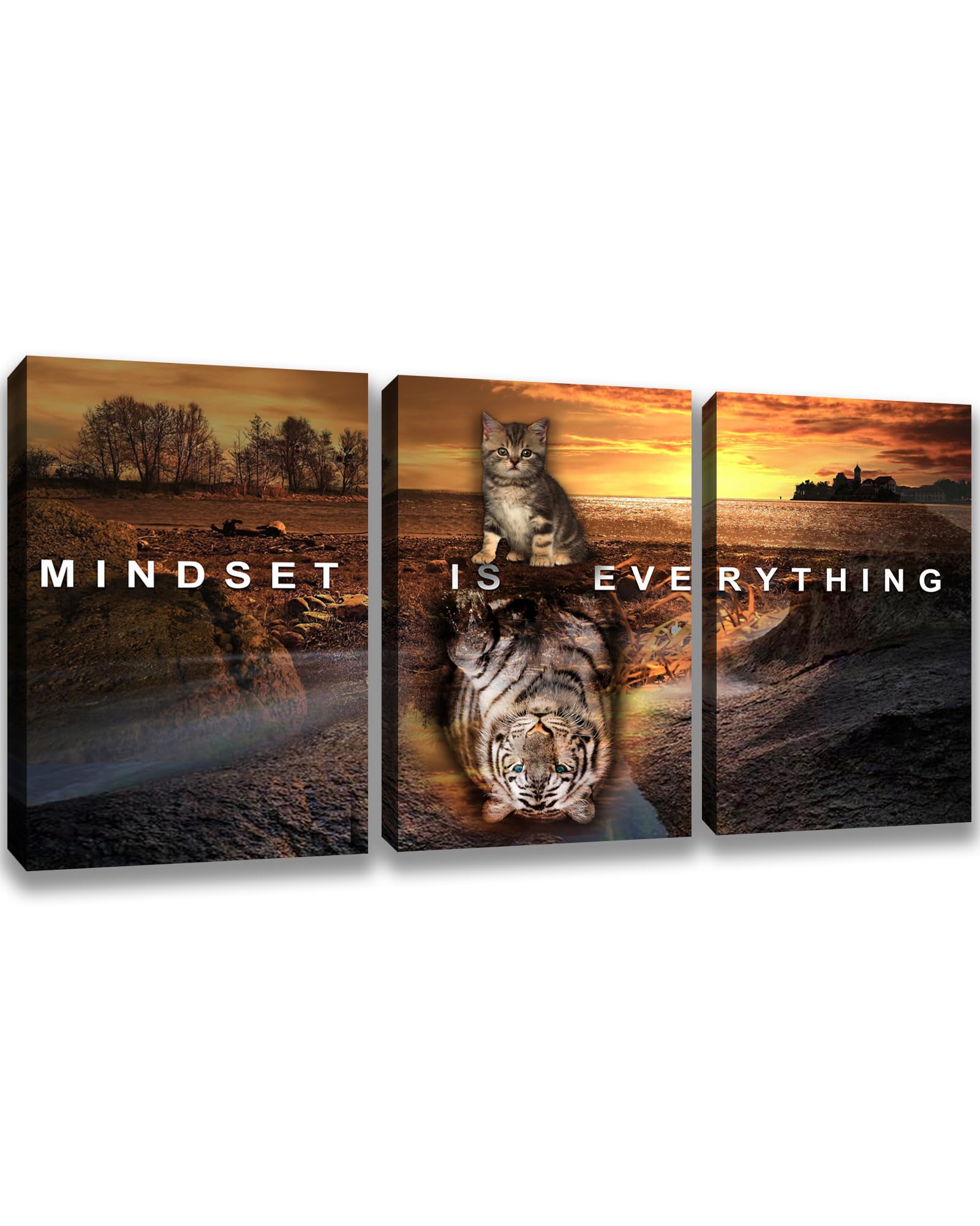 Kuiluuye Motivational Mindset Wall Art Office Wall Decor Cat Tiger Inspirational Canvas Wall Art Decor Prints Framed Posters for Home Office Living