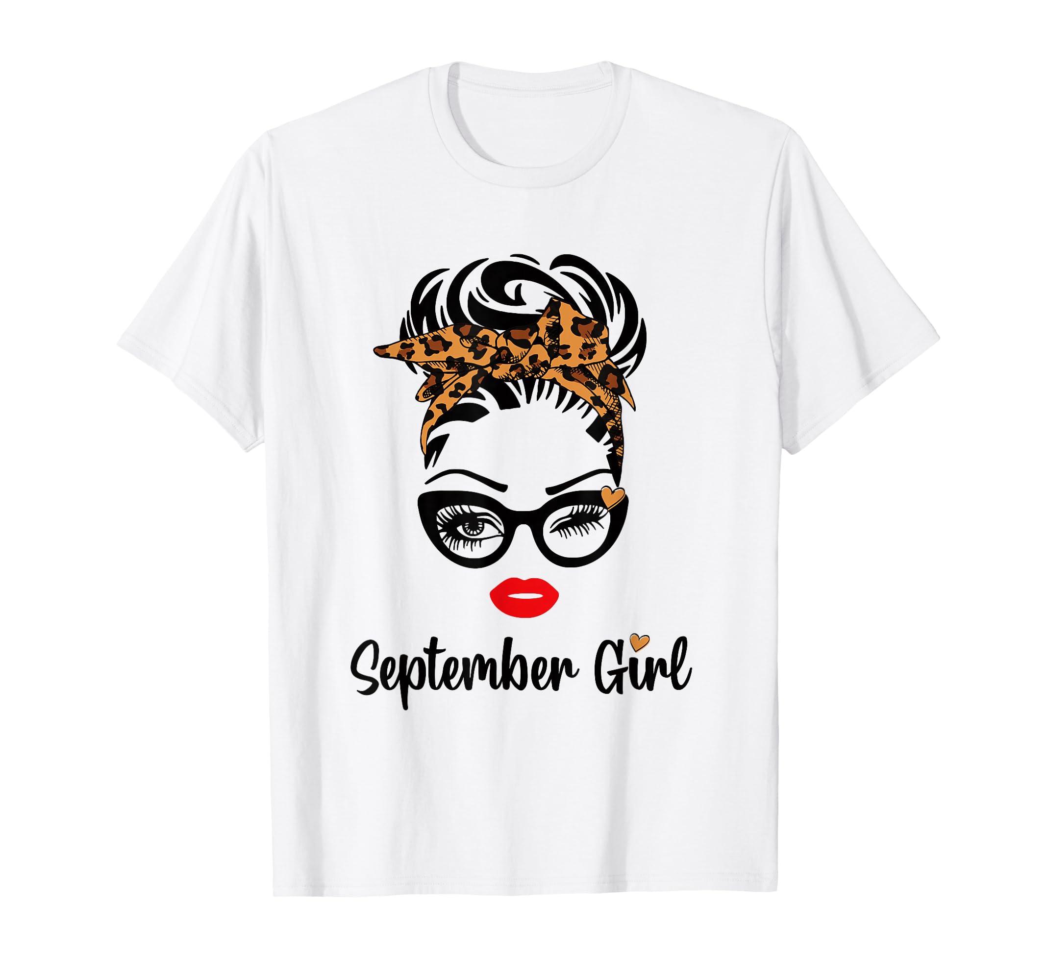 September Girl Women Face Wink Eye Leopard Bandana Birthday T-Shirt