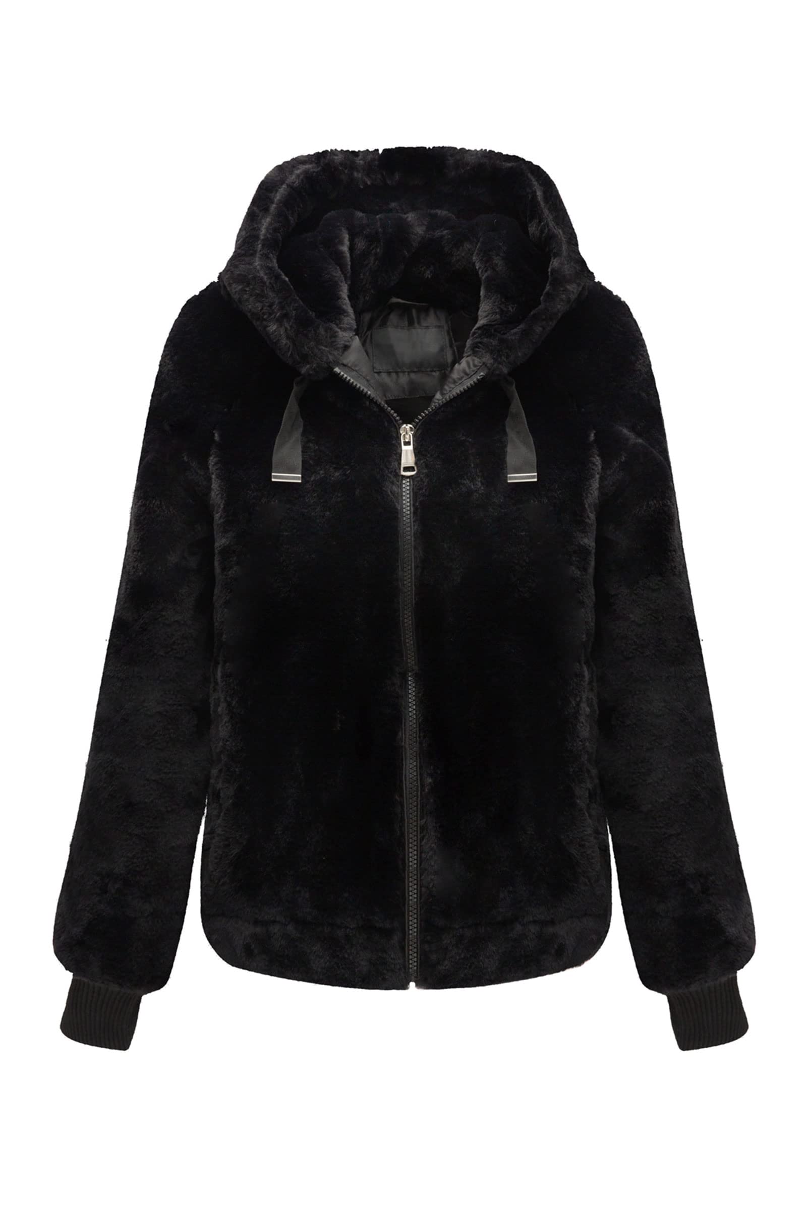 Bellivera Women's Faux Fur Coat Shearling Fluffy Fuzzy Shaggy Hood Sherpa-Lined Fleece Jacket