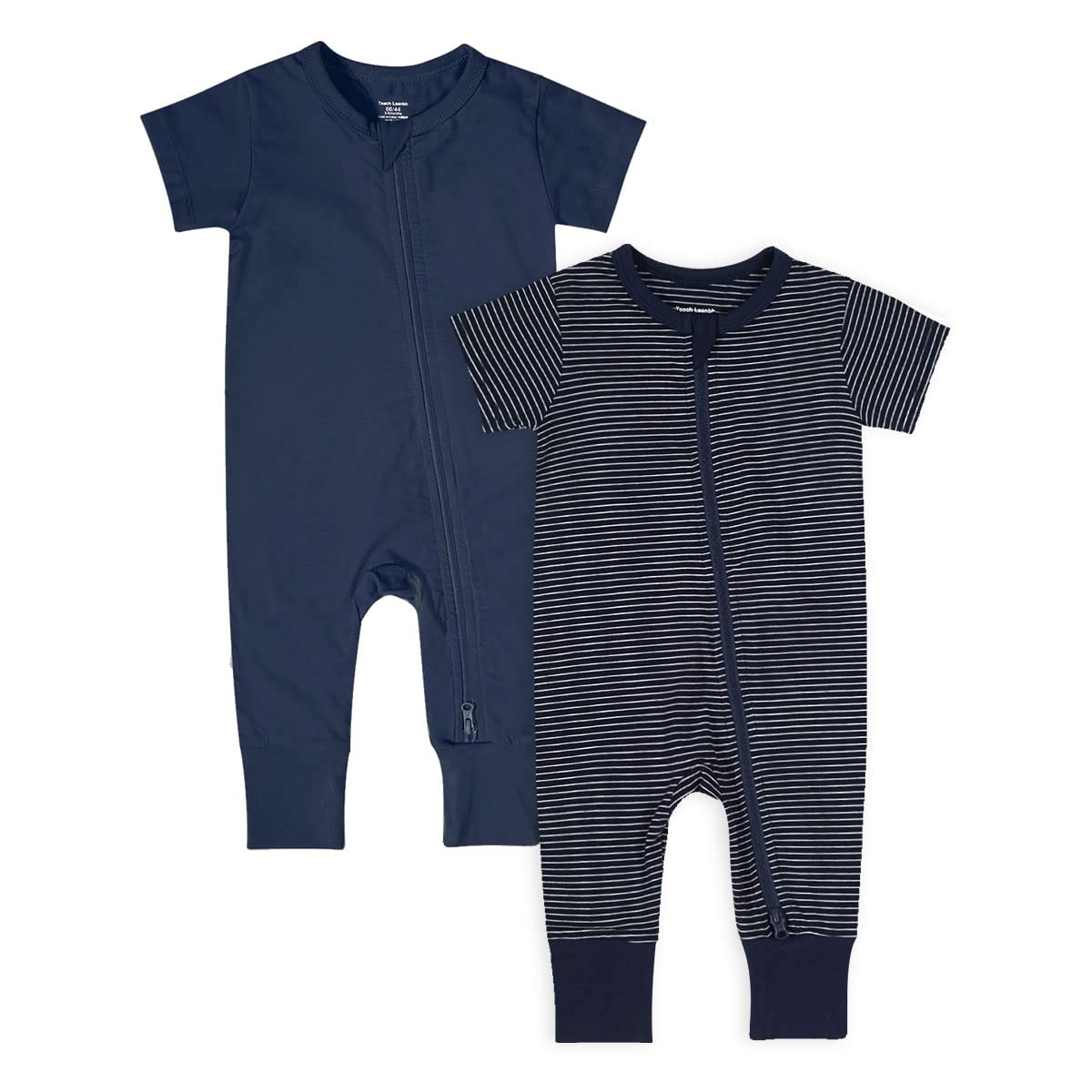 Teach Leanbh Baby Boys Girls 2-Pack Romper Jumpsuits Cotton 2 Way Zipper Short Sleeve Footless Sleep and Play 3-24 Months