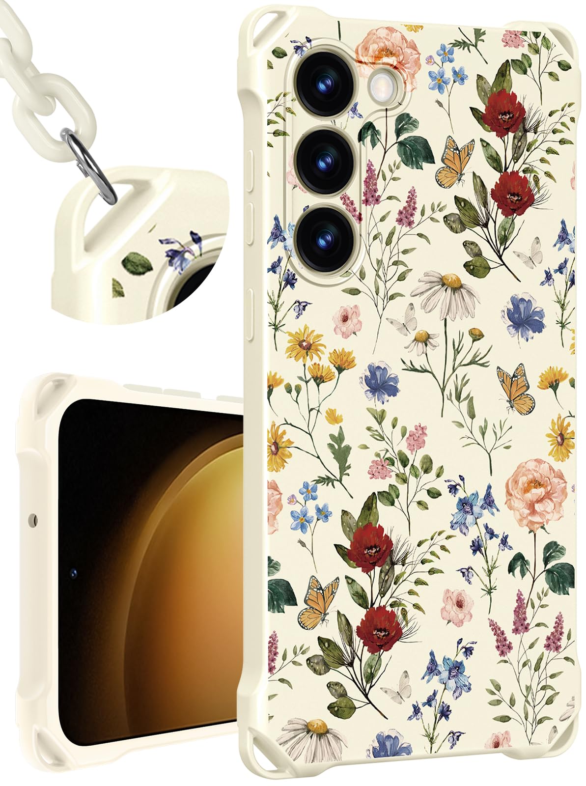 Toycamp for Samsung Galaxy S23 Case with Strap for Women - Cute Funny Girls Girly Retro Flower Pattern Design Case with Wrist Lanyards Four Corners