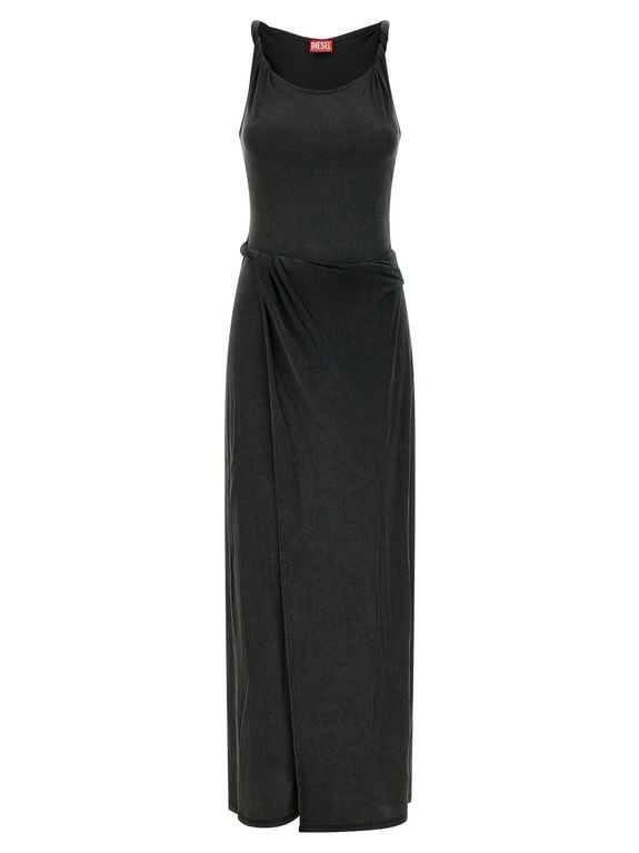 Women's DIESEL D-Estiga-S1 Dresses - Black - Maxi dresses Long 'D-Estiga-S1' dress in délavé-effect stretch modal, tank top with rolled shoulder straps, tone-on-tone Oval D embroidered logo at the back, wide round neckline, wrap skirt with rolled...
