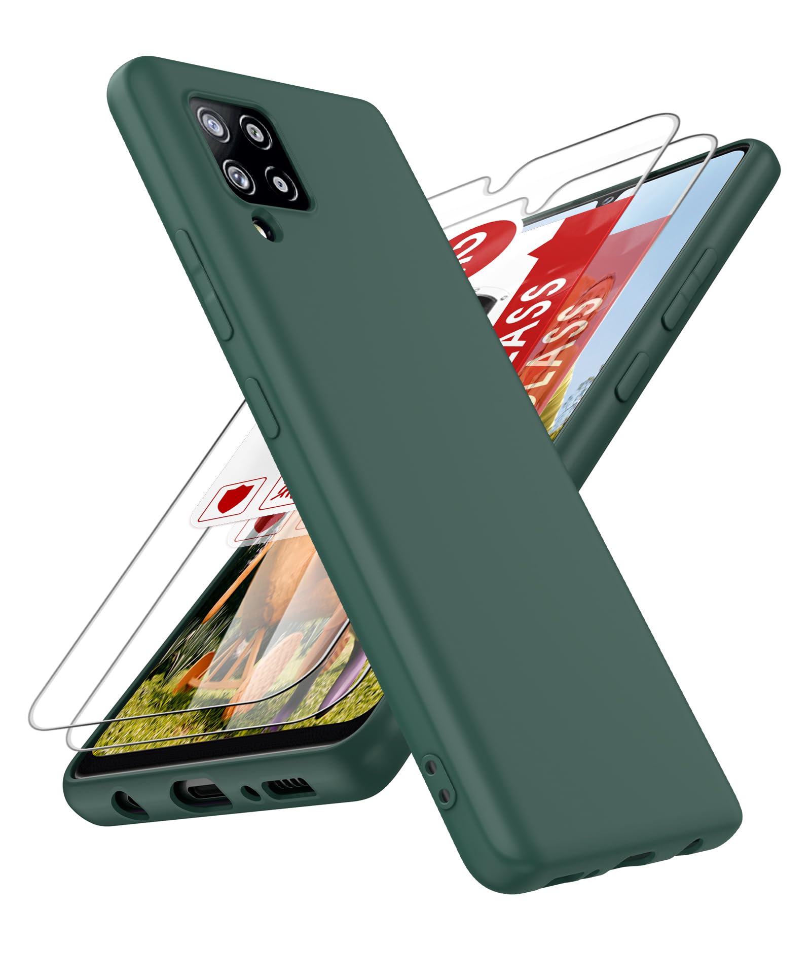 LeYi for Samsung Galaxy A42 5G Phone Case: A42 5G Phone Case with 2 Pack Tempered Glass Screen Protector for Women Men, Liquid Silicone Slim