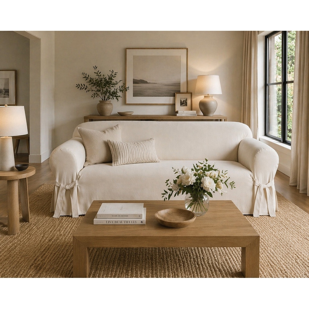 Protect your sofa with this machine-washable slipcover made from durable cotton duck fabric. Adjustable bowties allow for the perfect fit while also providing casual style to your living space.