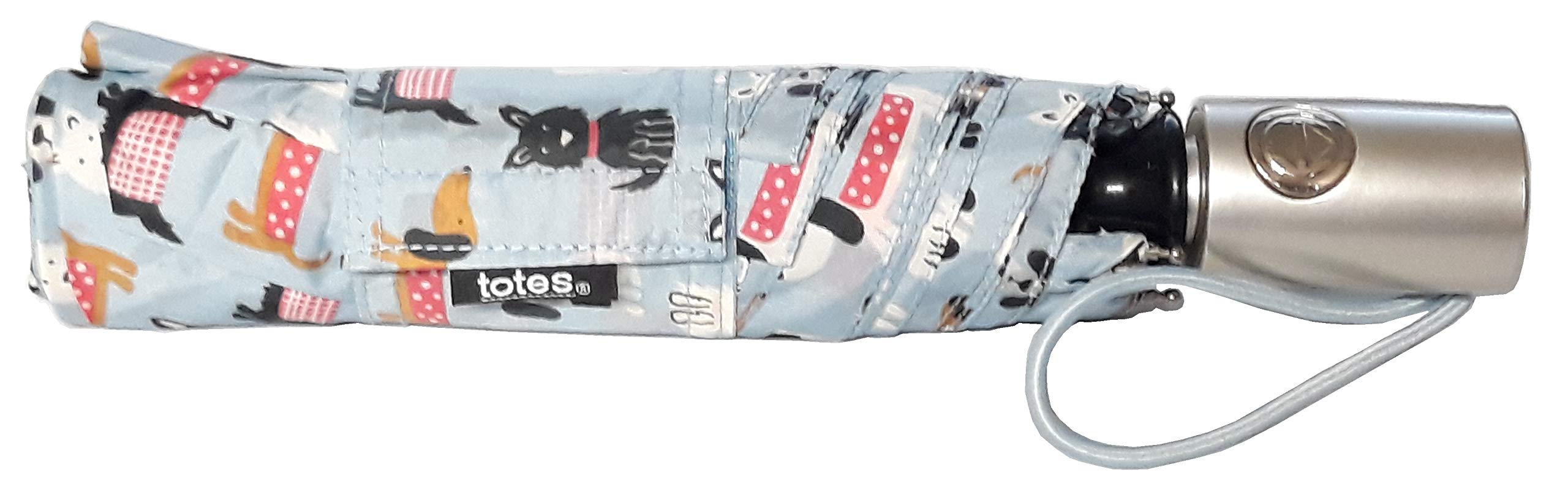 Stay protected rain or shine with this auto open/close umbrella featuring NeverWet Neverwet invisible coating allows rain to roll right off so umbrella stays 4x drier --no dripping mess! Auto opens and closes for ease and convenience. Your totes purchase is protected by totes One Year Limited Warranty. Folded length is 11 in with a canopy arc 43 in. Stay protected rain or shine with this auto open/close umbrella featuring NeverWet. Neverwet invisible coating allows rain to roll right off so umbrella stays 4x drier --no dripping mess! Auto opens and closes for ease and convenience. Folded length is 28 cm (11 in) with a canopy arc of 104 cm (41 in). Product weight is 345 gr (12.2 oz.) Care: Leave open to dry. Wipe clean with a damp cloth.