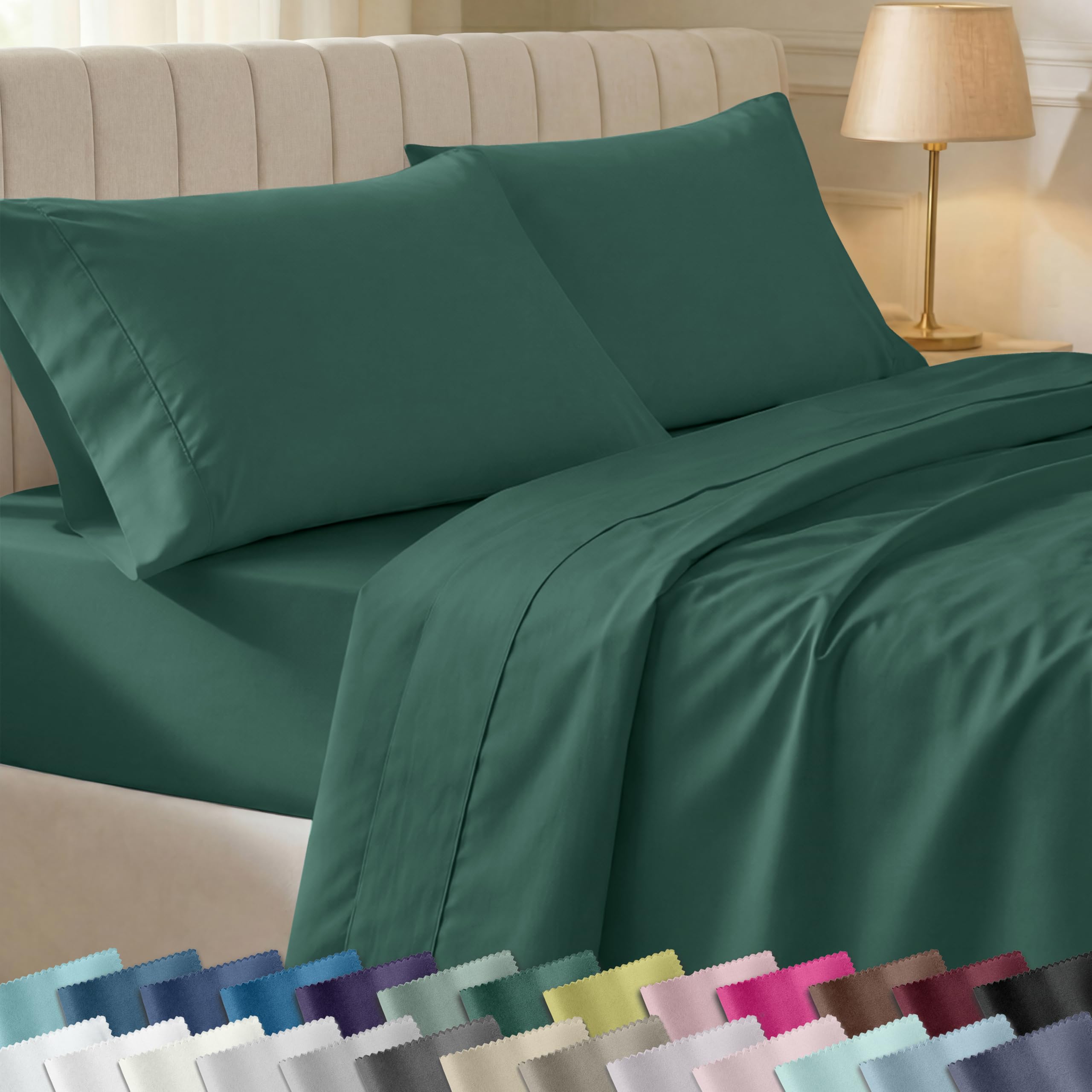 100% Long Staple Cotton, Sateen Weave Winner of the 2026 Good Housekeeping Best Bedding Award - Everyday Ease Cotton Sheets: Our 400 thread count twin sheet set is made with single-ply 100% long-staple cotton for a smooth hand feel and lightweight comfort. Independently tested to earn the prestigious Good Housekeeping Seal. 3-Piece Cotton Twin Sheet Set: Includes 1 flat sheet, 1 deep-pocket fitted sheet with all-around elastic grip (fits mattresses 8"–15"), and 1 standard size pillowcase with classic open-end design. Top/Bottom tags simplify bed making. Finished sizes: Flat Sheet (66" W x 100" L), Fitted Sheet (39" W x 75" L), Pillowcase (21" W x 30" L). Soft Comfort: The lightweight cotton sateen weave provides a smooth, lustrous feel that softens with each wash. Gentle on skin - naturally breathable twin cotton sheets help maintain comfort through the night. Easy Care for Everyday Use: Durable 100% cotton twin size sheet set is designed for regular home laundering and can get softer wash after wash, just like your favorite denim. Tested for pilling, fading and shrinkage. Machine wash warm and tumble dry low; remove promptly to help reduce wrinkles. Trust & Responsibility: Customers have chosen our brand since 2017. Thread count is verified by independent labs (+/- 5% variance). We’ve donated over 56,000 sheet sets across the U.S. in the last five years. Crafted thoughtfully in a family-run factory in India and shipped in recyclable, plastic-free packaging. Experience the lightweight, relaxed comfort and breathable weave of our 400 thread count sateen, crafted from 100% long-staple cotton. The slightly relaxed construction ensures a smooth, breathable texture that encourages comfortable sleep night after night. This high-quality fabric offers a classic, fuss-free look straight from the dryer, with a quiet, luminous sheen and a silky-soft glide. Durability is independently lab tested and made from genuine, traceable long-staple cotton for verified 400 thread count accuracy (+/- 5% variance). The fabric is lab tested for pilling, fading, and shrinkage. Easy care: Machine wash warm, tumble dry low, remove promptly to help reduce wrinkles. Each queen, full, king and cal king sheet set includes 1 flat sheet (4” hem), 1 deep-pocket fitted sheet (fits 8–16”), and 2 pillowcases with classic open ends, whereas split king sheet set includes 1 flat sheet with 2 fitted sheets (fits 8-15") and 2 pillowcases. The twin / twin XL size sheet set includes 1 flat sheet with 1 fitted sheet (fits 8-15") and 1 pillowcase. All sets come with Top/Bottom labels. Every item bearing the OEKO-TEX STANDARD 100 label is certified as having passed safety tests for harmful substances. Our cotton sheets have been featured in numerous publications, including the Good Housekeeping, Architectural Digest, The Wall Street Journal. Trusted by households across the country, this set offers a smooth, inviting feel suitable for the primary bedroom. Responsibly crafted in a family-owned factory in India and packaged in a reusable, plastic-free bag. We've donated over 56,000 bedding items to U.S. communities over the past five years.