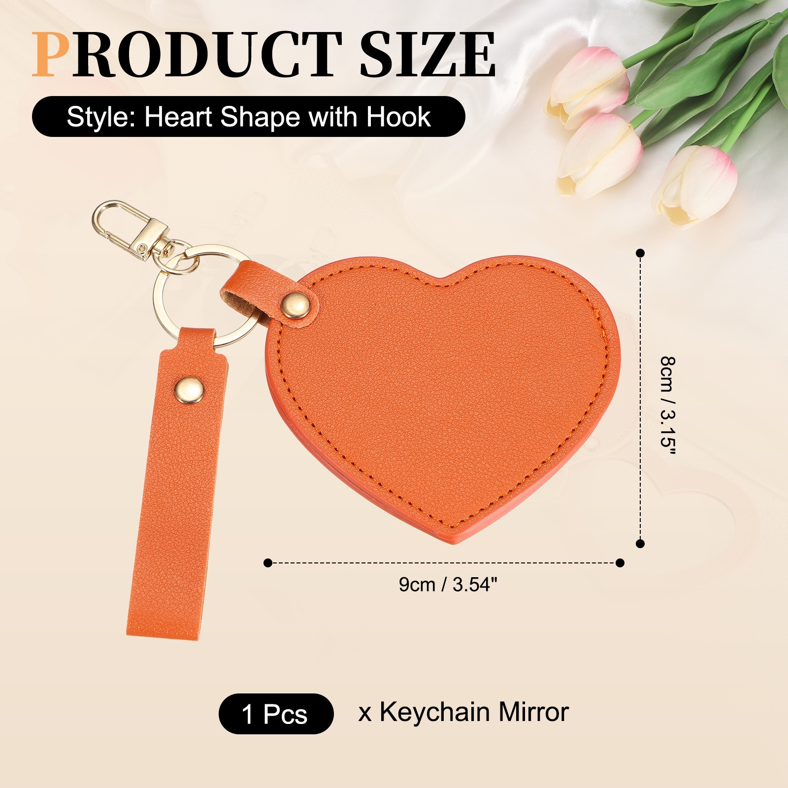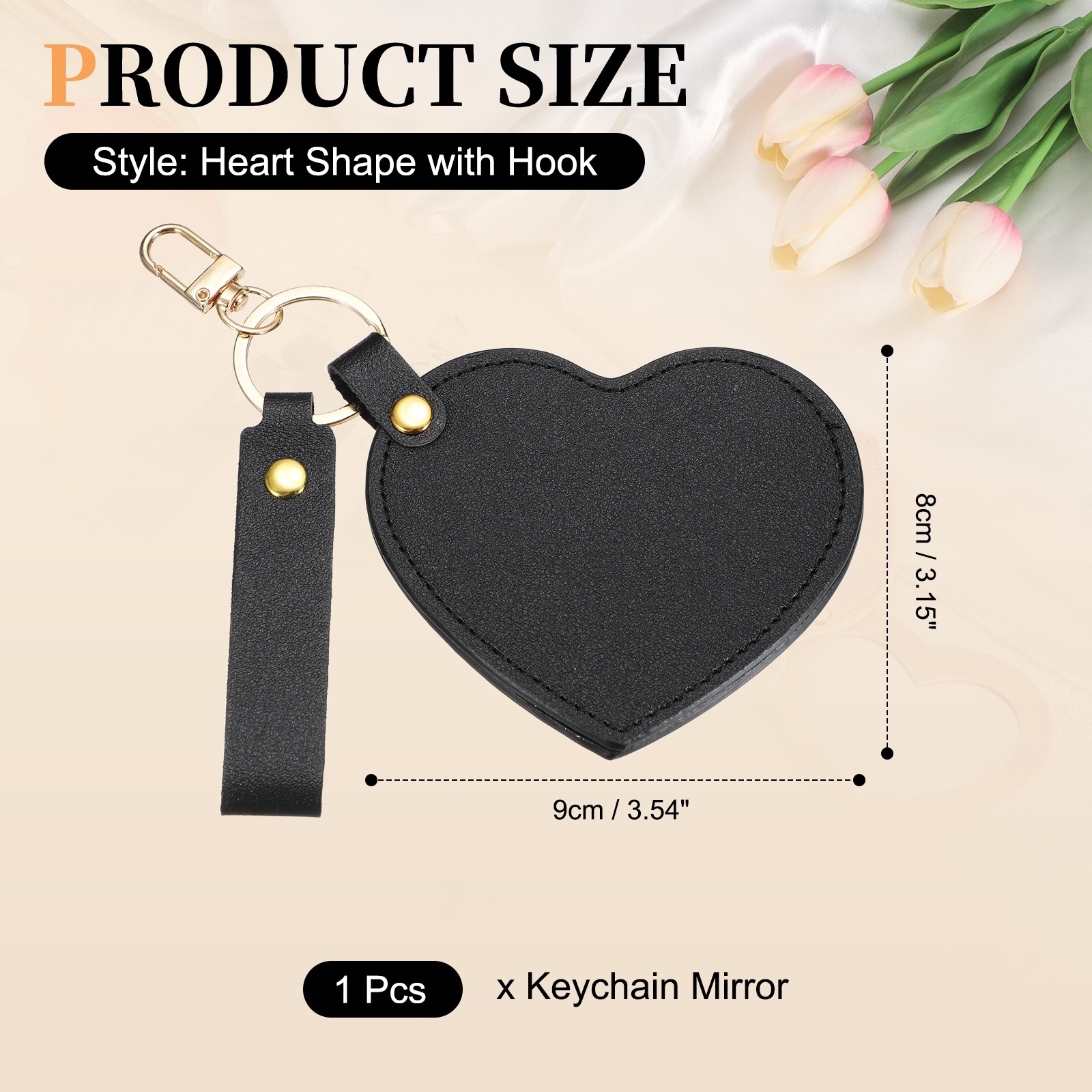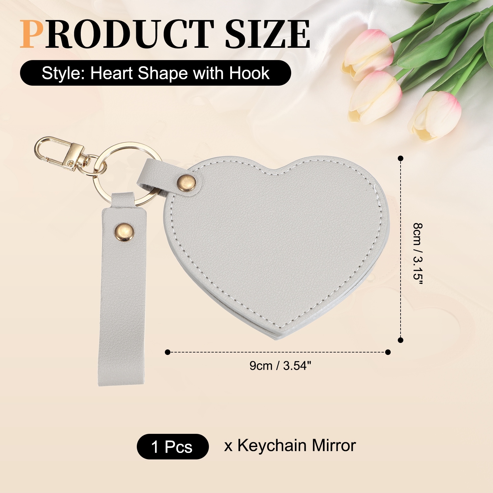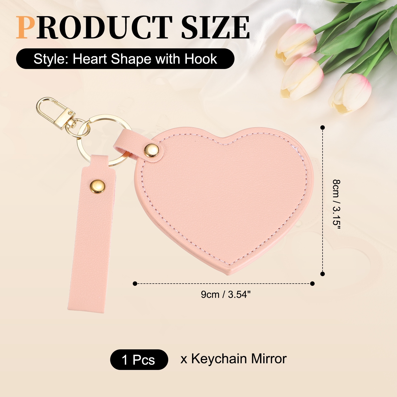 Keychain Mirror, Mini Compact Mirror with PU Leather Cover Pocket Size Heart Shape with Hook Portable Rotating - Standard