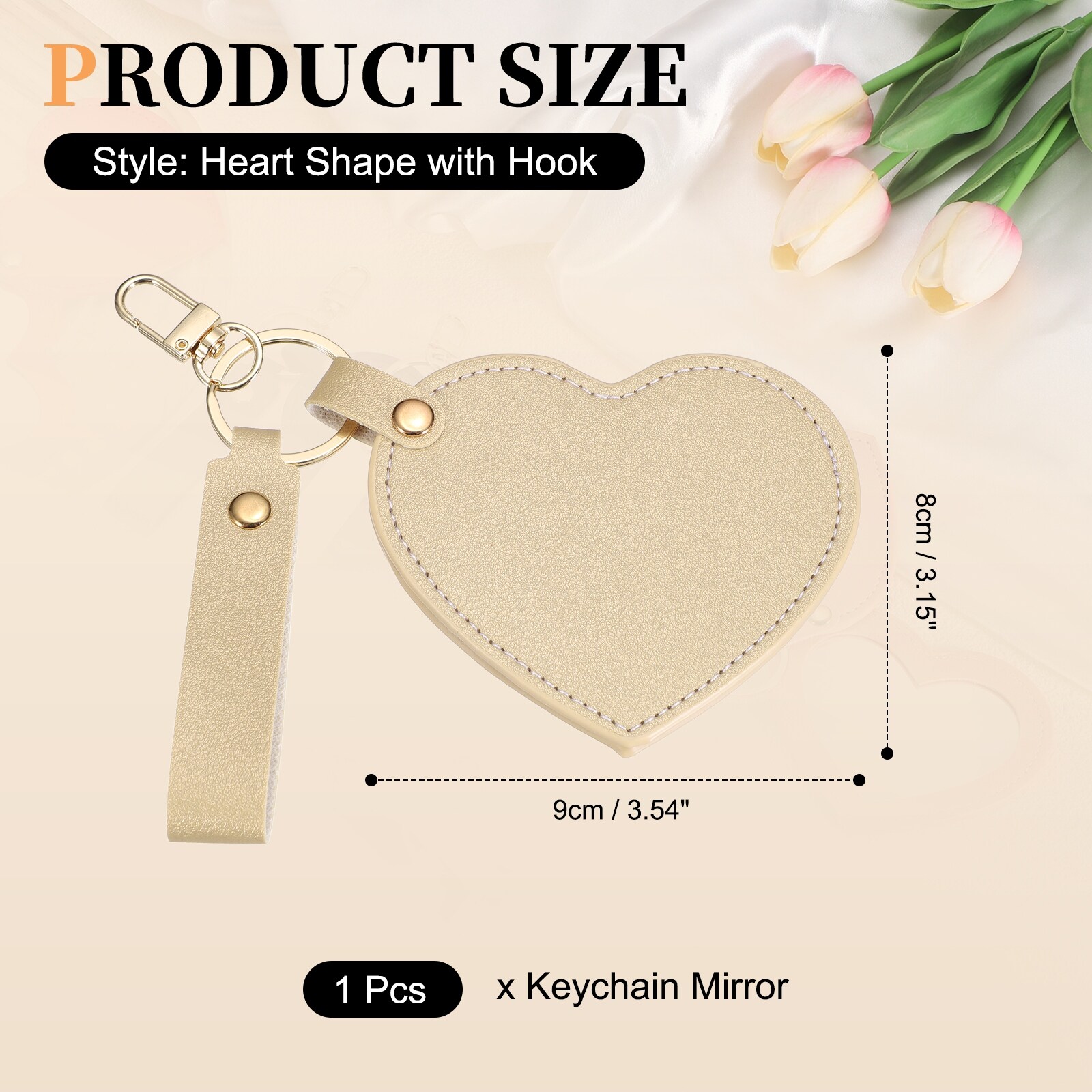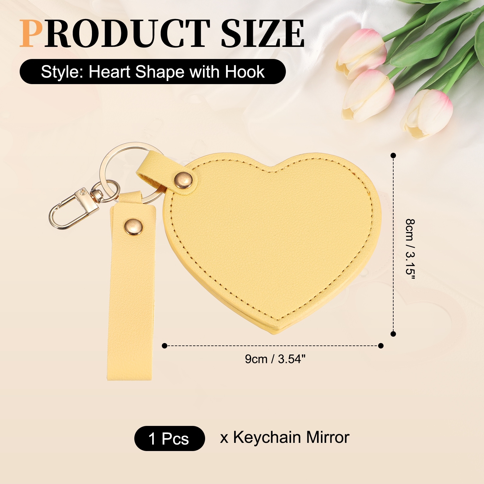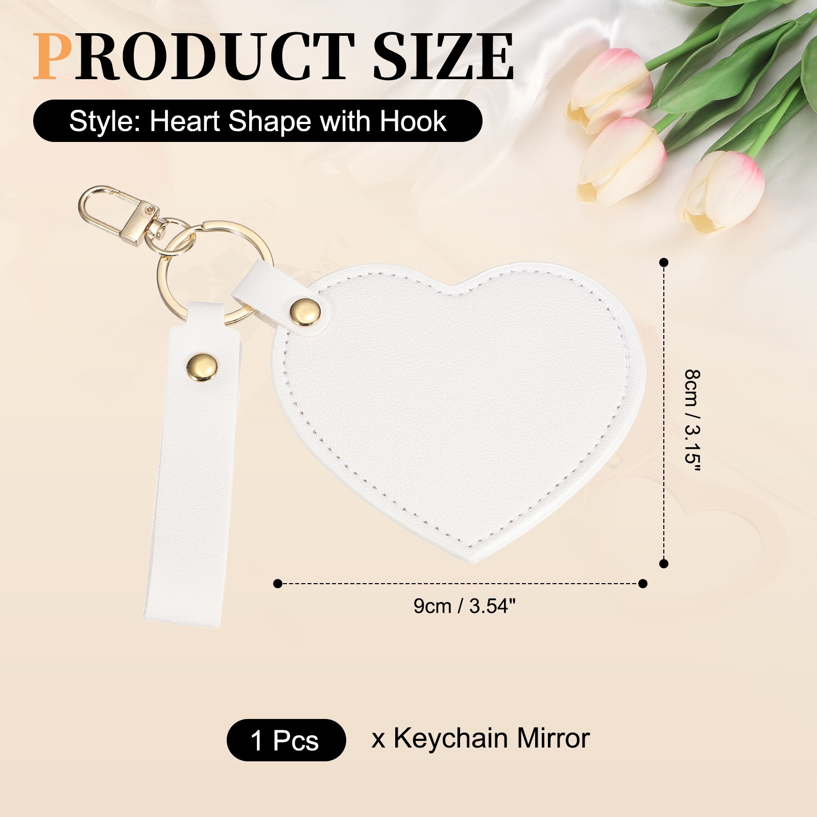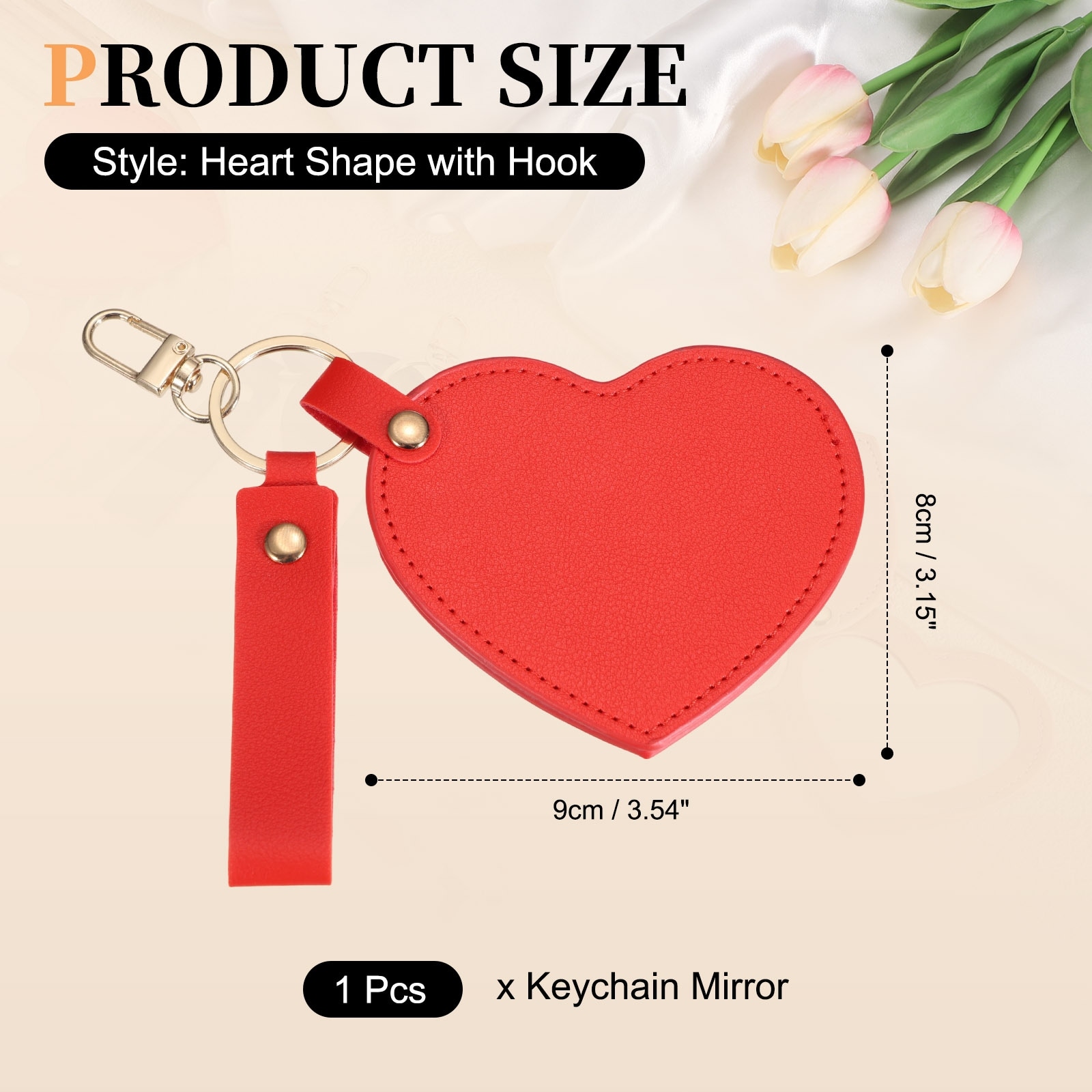 Keychain Mirror, Mini Compact Mirror with PU Leather Cover Pocket Size Heart Shape with Hook Portable Rotating - Standard