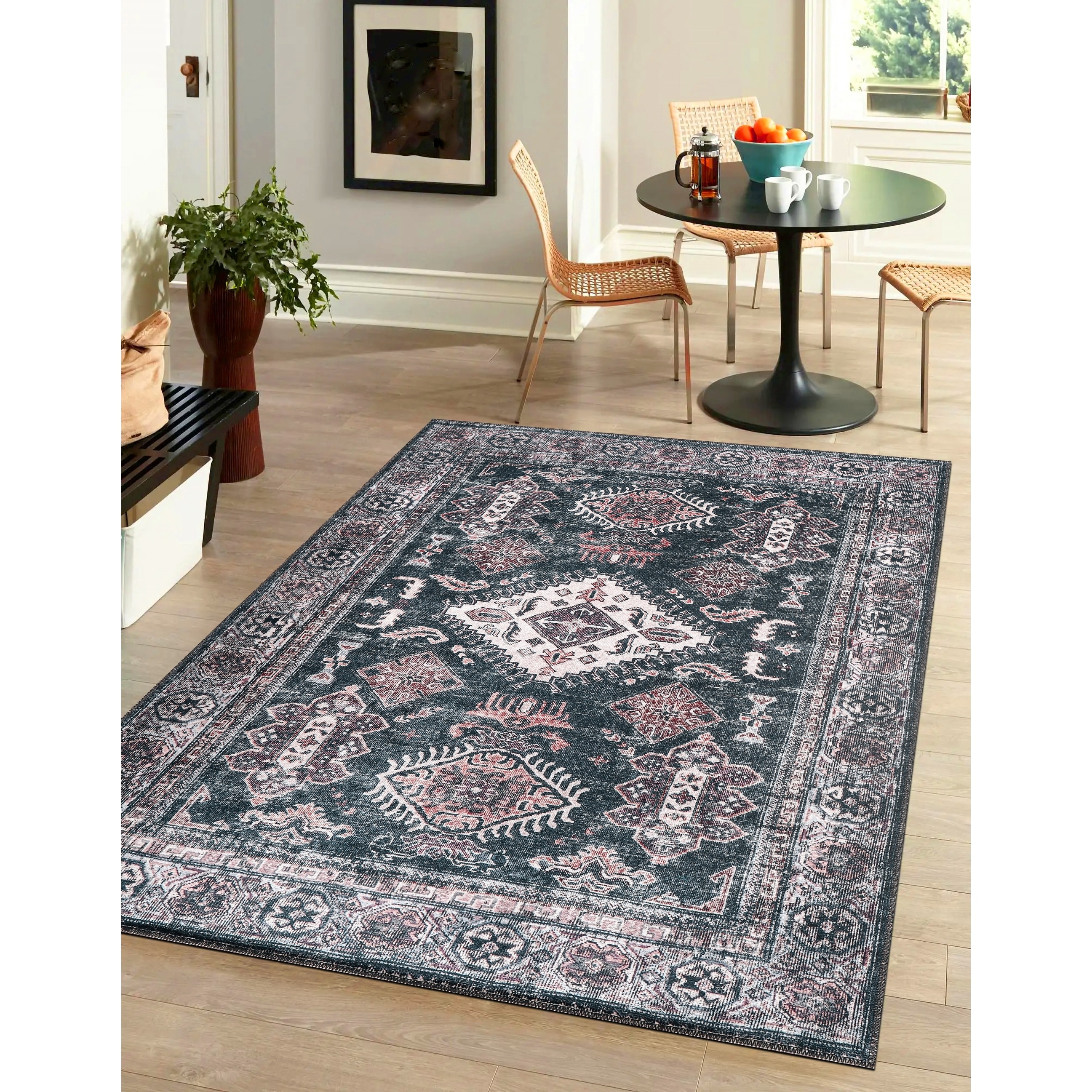 Washable Area Rugs for Living Room Stain Resistant Carpet Vintage Rugs Bedroom Low Pile Non Slip Accent Carpet