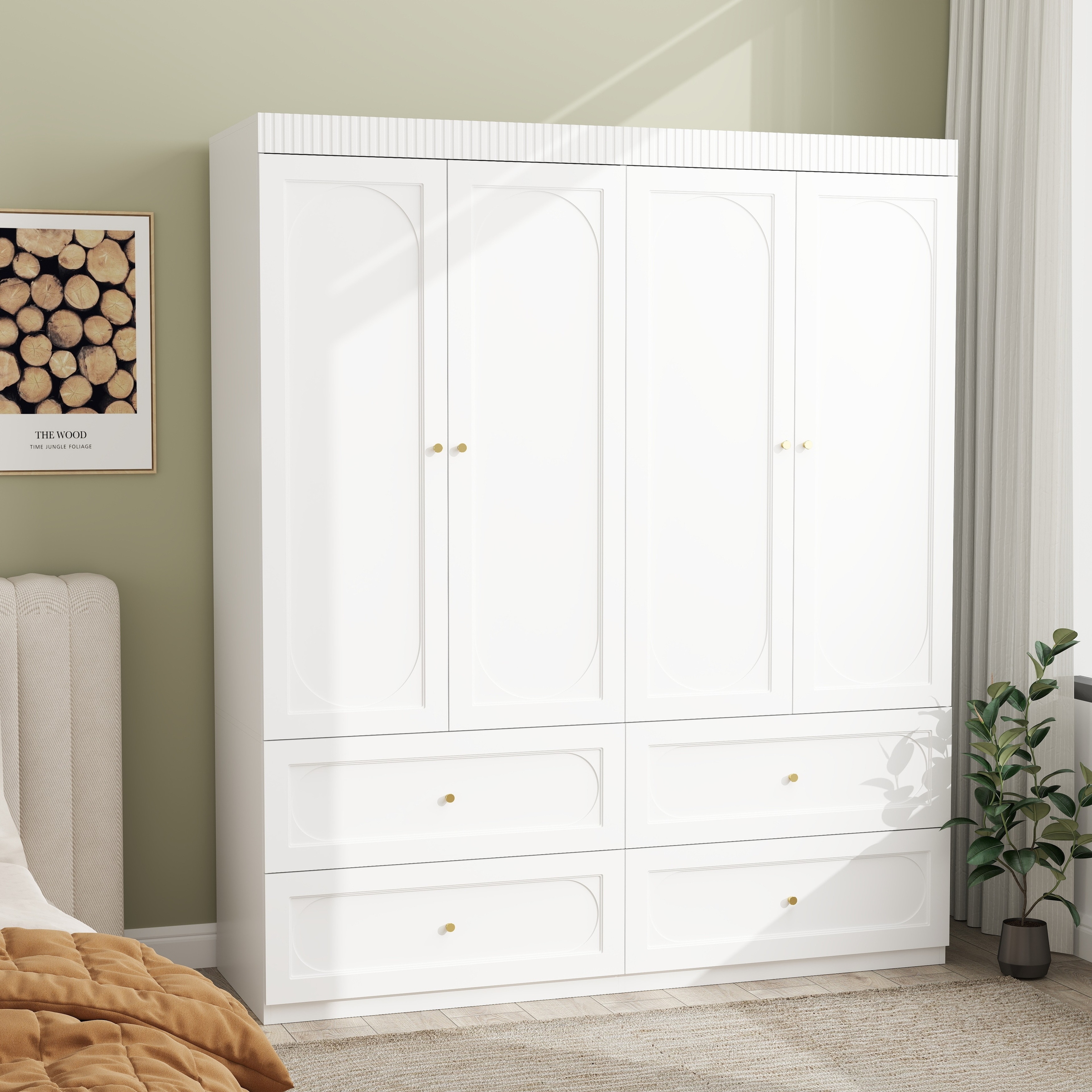 Modern 4-Door Wardrobe with 4 Drawers, Multi-Purpose Storage Cabinet with Elegant Design and Ample Space - 63" in Width