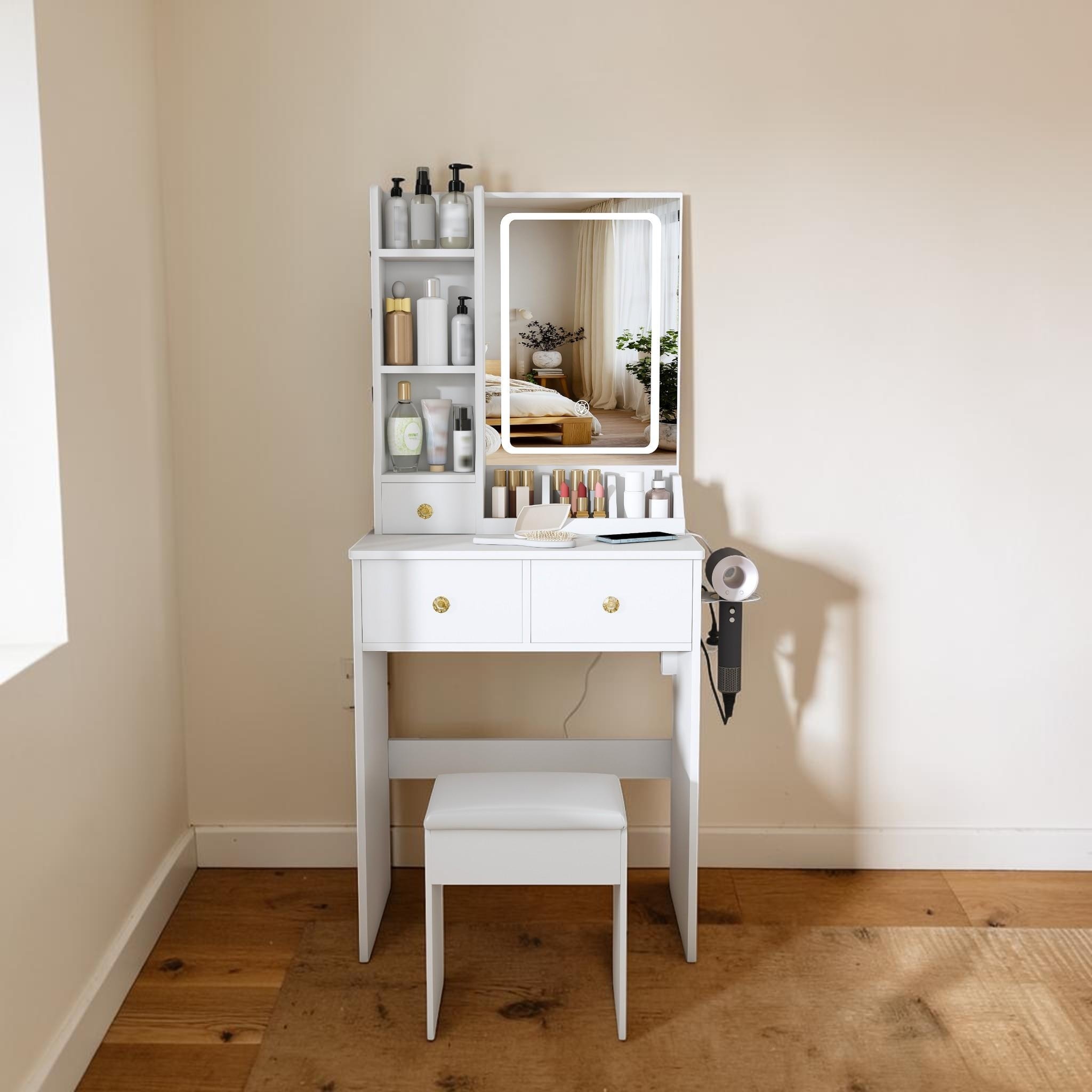 Product Introduction This compact vanity set is designed specifically for small bedrooms and children's spaces.