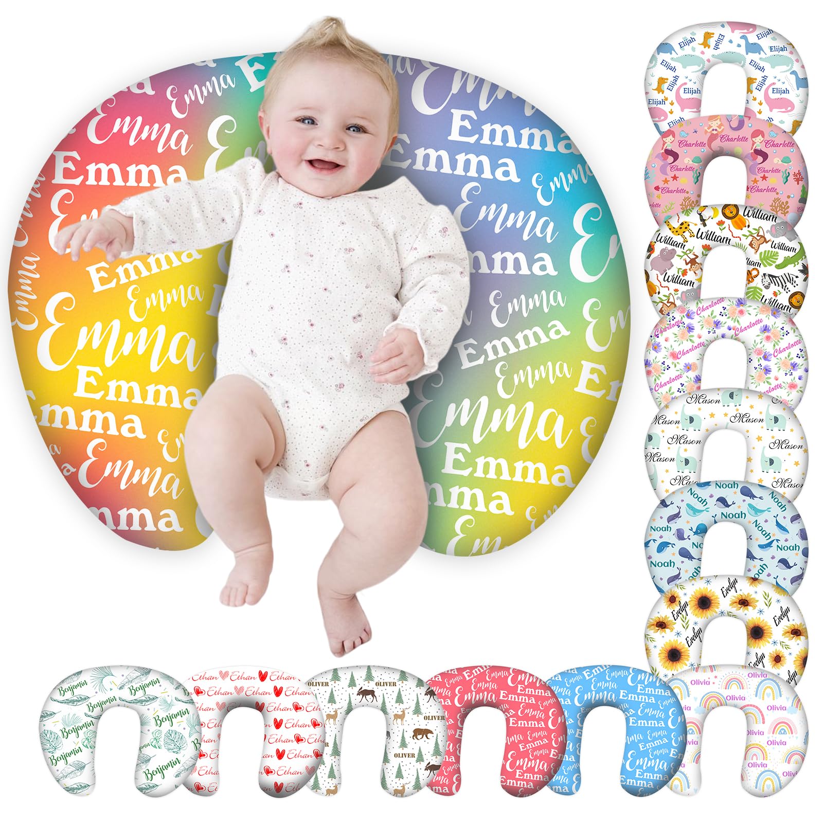 ❤️[Unique Personalization] - Add your baby's name to this customized cover for breastfeeding pillow for a special, one-of-a-kind flair. The cute pattern designs make custom nursing pillowcase more fashionable and more eye-catching than ordinary boring feeding pillow covers. 🥰[Soft and Breatha