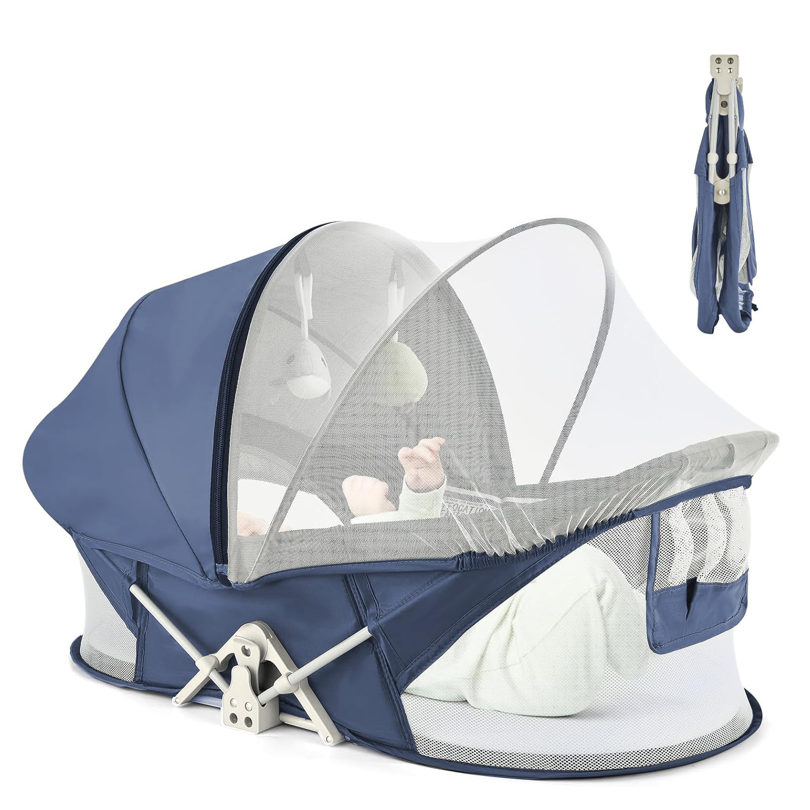 ISELECTOR Portable Baby Bassinet Travel Baby Bed, Baby Cribs Travel Pod for Outdoors Baby Lounger Infant Travel Bed with Mosquito Net and Sunshade