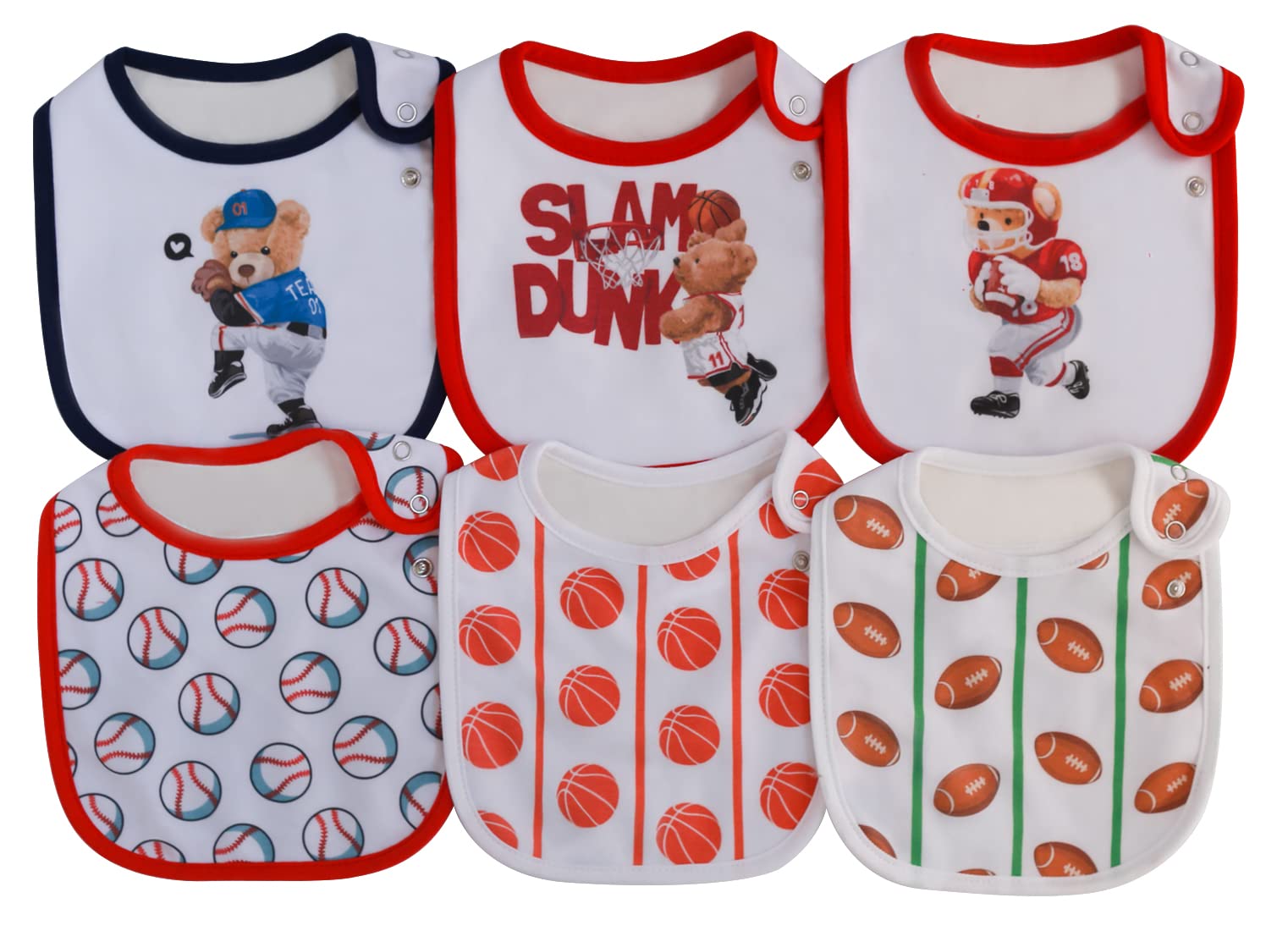 Maiwa 6 Pack Waterproof Cotton Baby Bibs for Girls Boys for Drooling Eating with Snaps