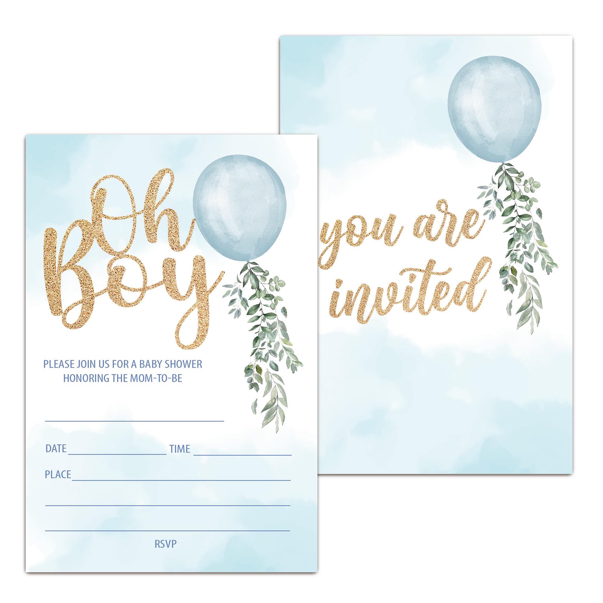 RPLCSPC Oh Boy Baby Shower Invitation Boy Baby Shower Gender Neutral Party Fill in Invites Cards Watercolor Blue Invitation Paper Cards for Gender