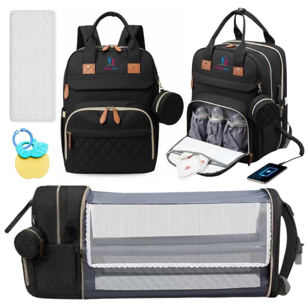[𝗖𝗼𝗺𝗽𝗹𝗲𝘁𝗲 𝗗𝗶𝗮𝗽𝗲𝗿 𝗕𝗮𝗴 𝗦𝘆𝘀𝘁𝗲𝗺 𝘄𝗶𝘁𝗵 𝗖𝗵𝗮𝗻𝗴𝗶𝗻𝗴 𝗦𝘁𝗮𝘁𝗶𝗼𝗻 ] : This diaper bag backpack easily converts into a hygienic changing area, making it an essential baby travel bag for daily