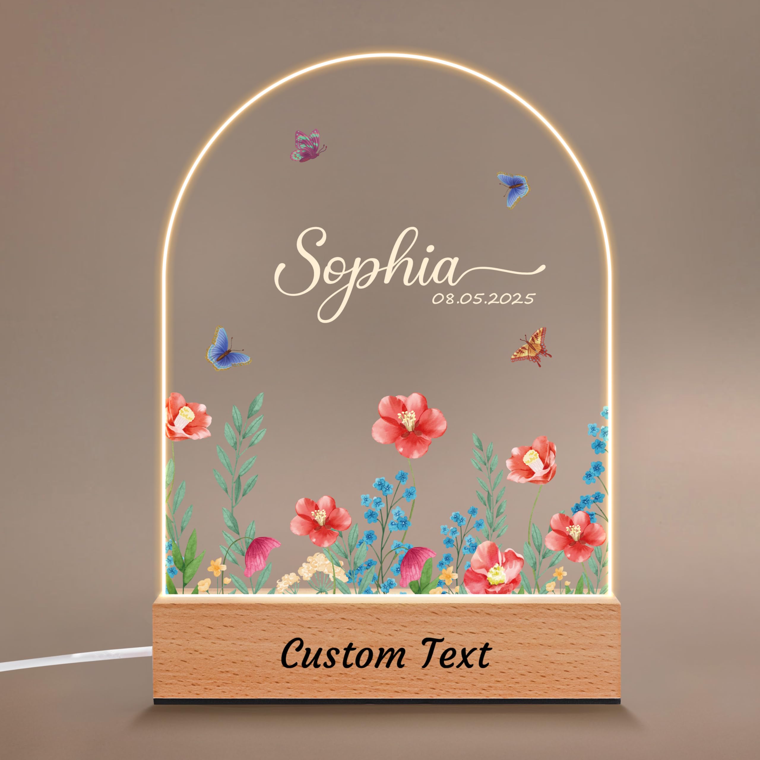 IOUMAM Personalized Baby Gifts for Kids, Custom Flower Acrylic Plaque Name Night Light for Toddler, Baby Shower Newborn Birthday Gifts for Boys Girls