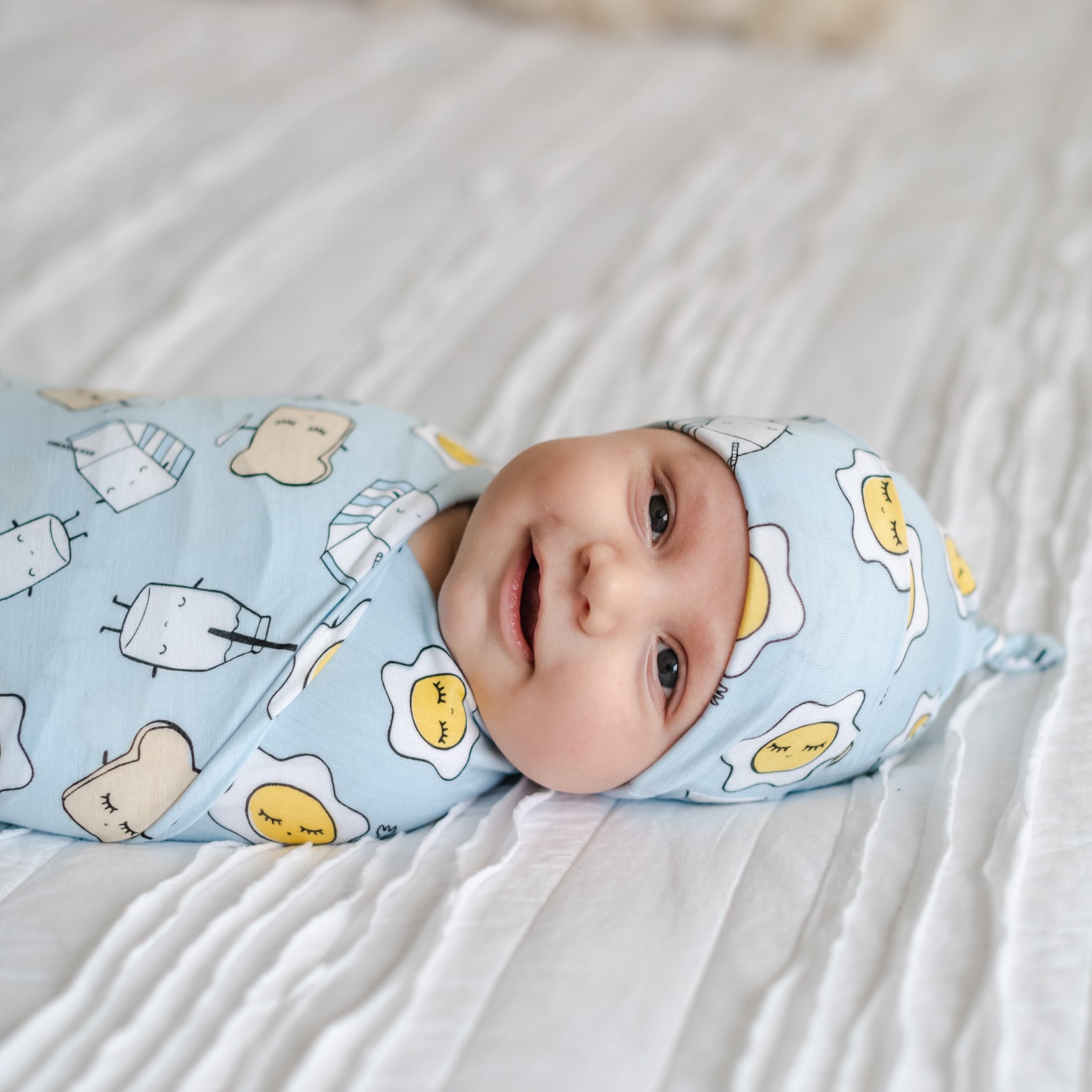 Blue Breakfast Buddies Swaddle + Hat Set - OSFA