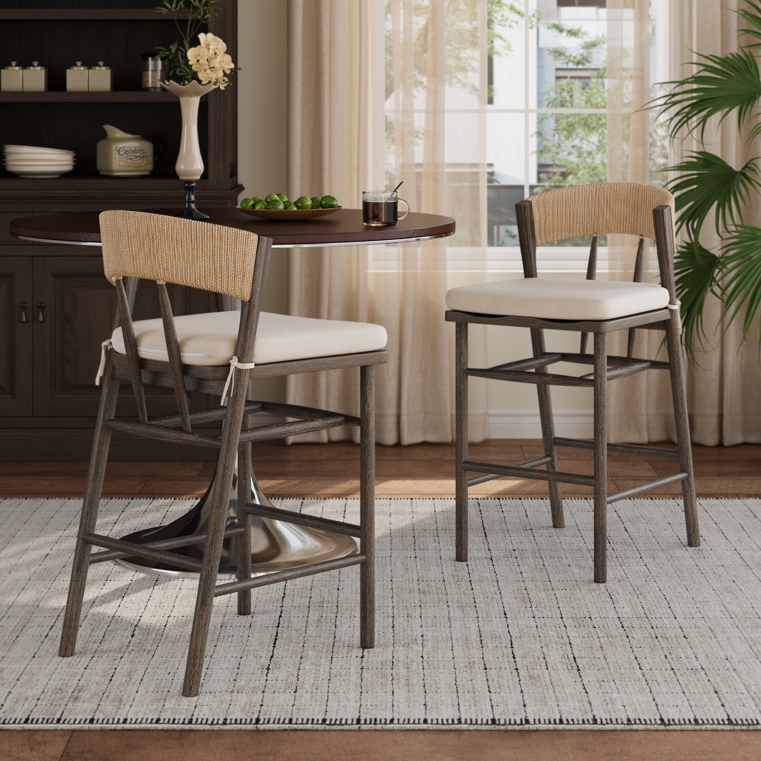 Bring timeless farmhouse charm to your kitchen island or home bar with this upholstered counter-height bar stool set.