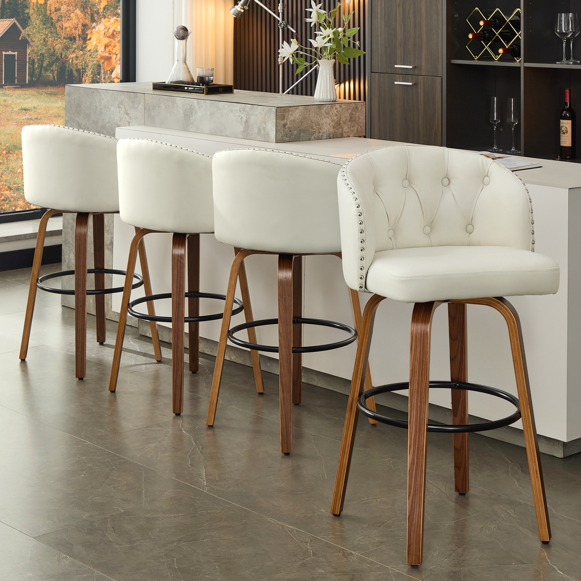 【360° Swivel Bar Stool】This 30.5 inch barstools are designed with a swivel function, allowing for easy rotation, Whether engaging in lively conversations, reaching for items, or simply adjusting one's position, It provides a comfortable and convenient…