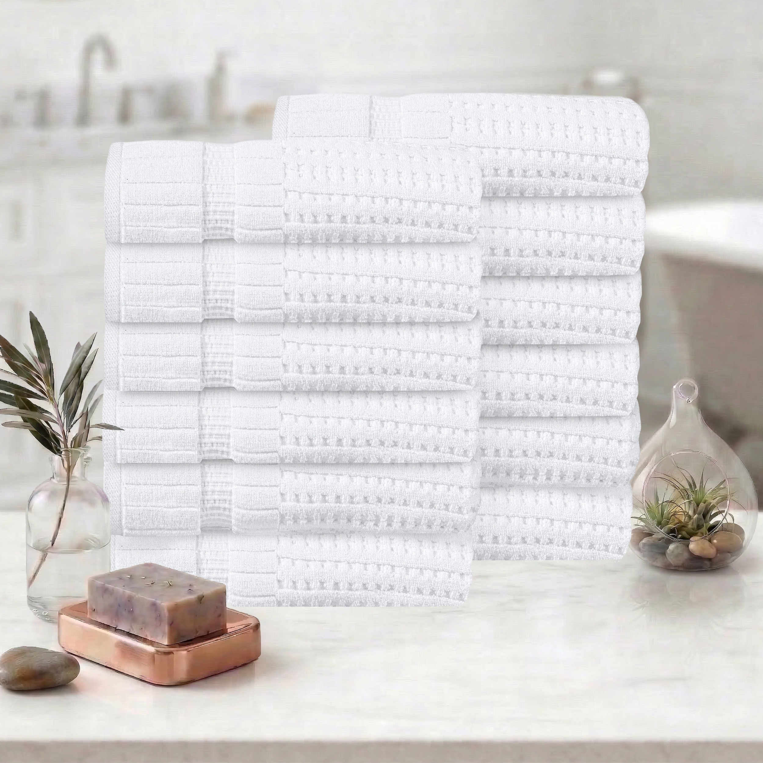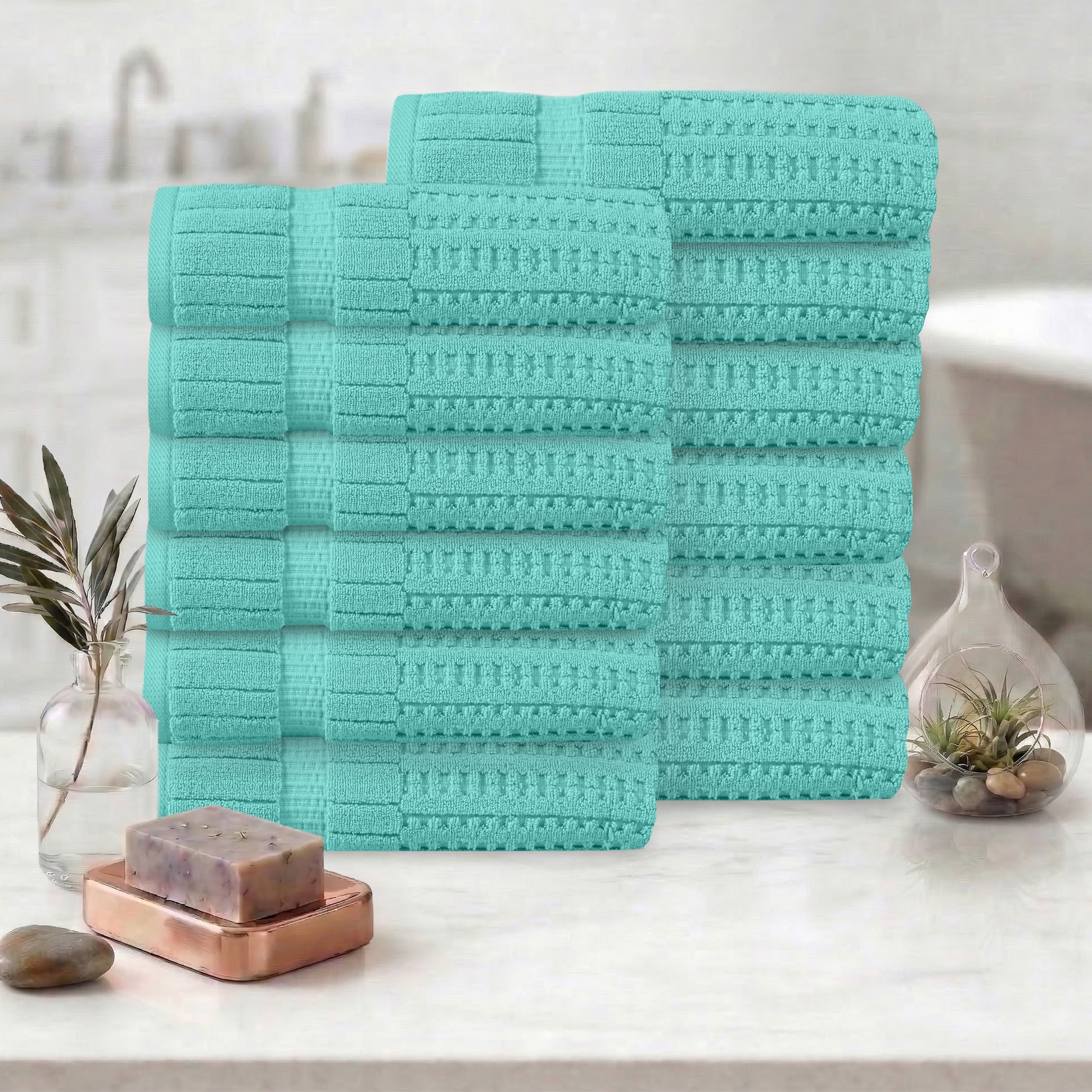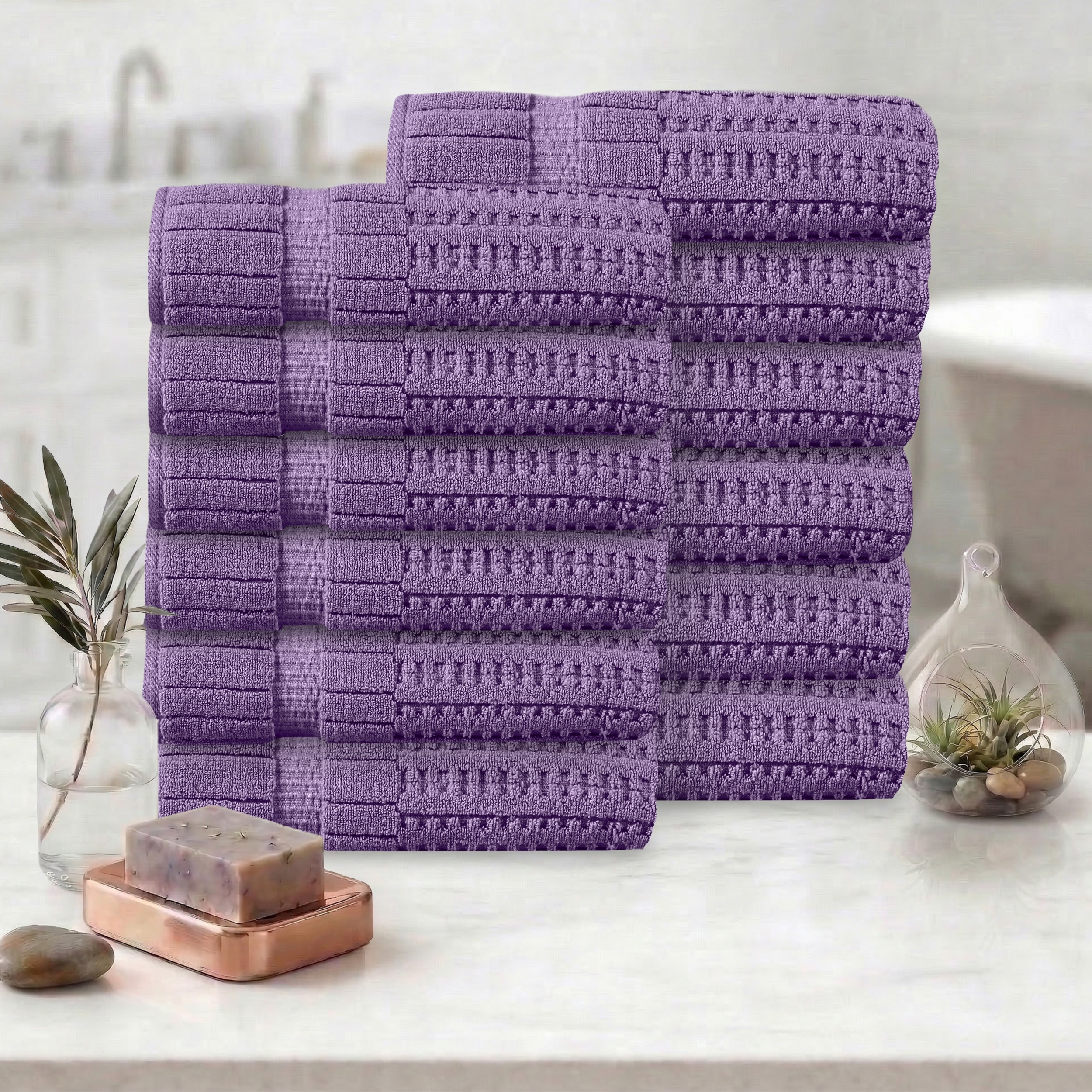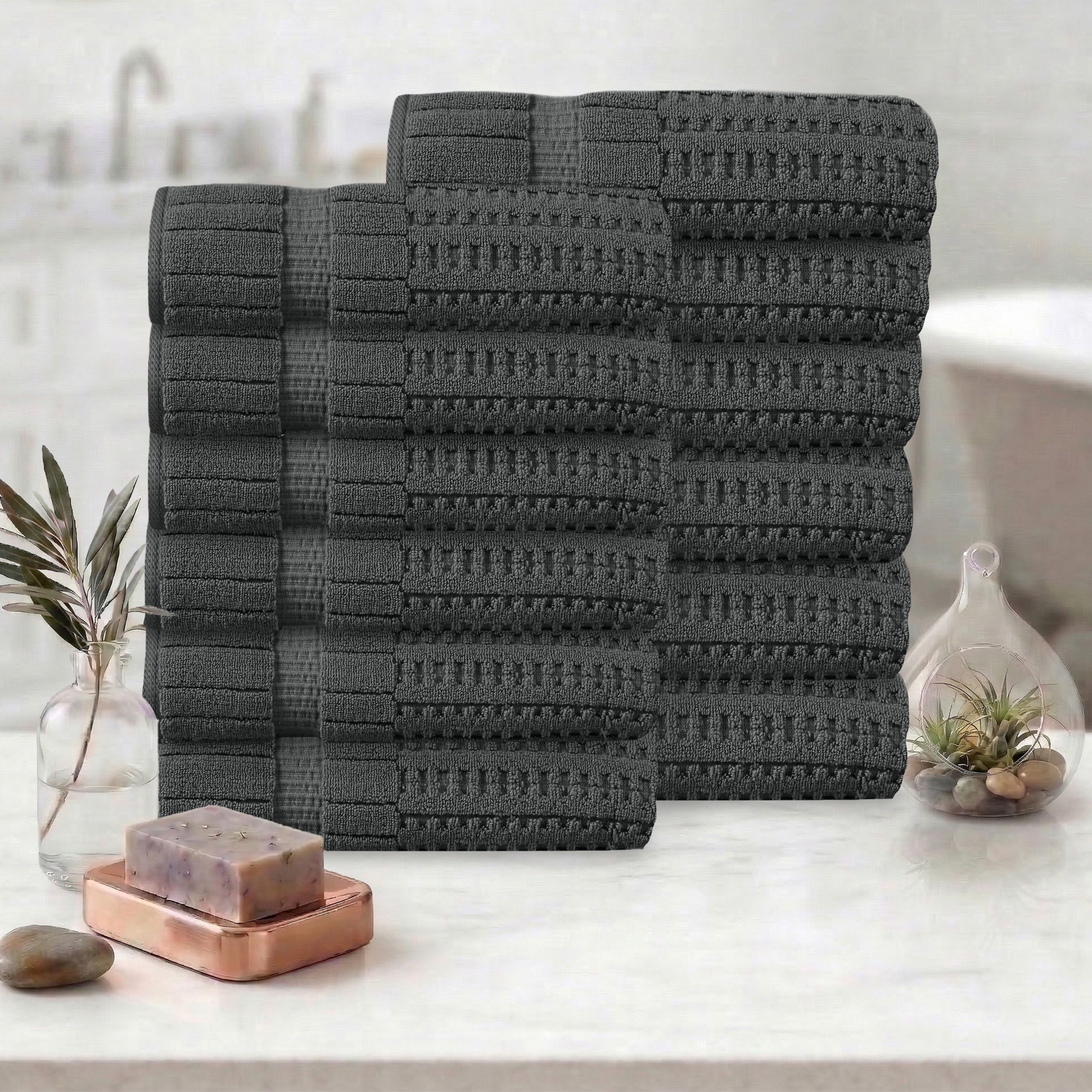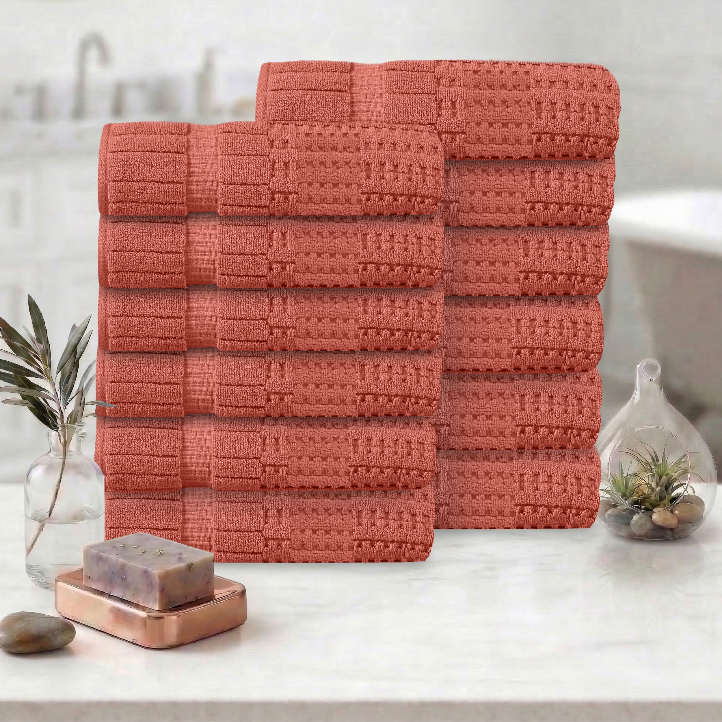 Linery & Co. Cotton Diamond Waffle Texture Bath Towels