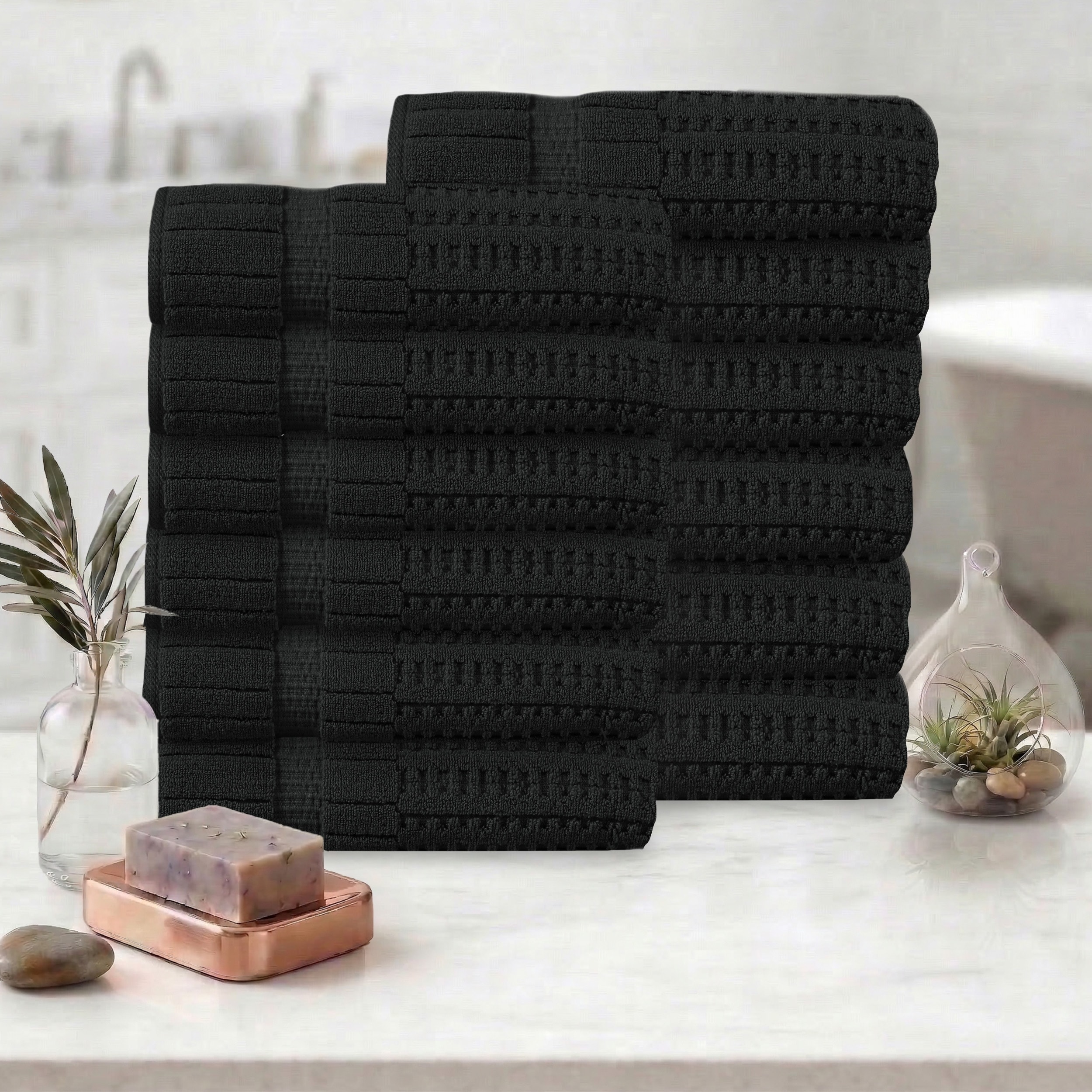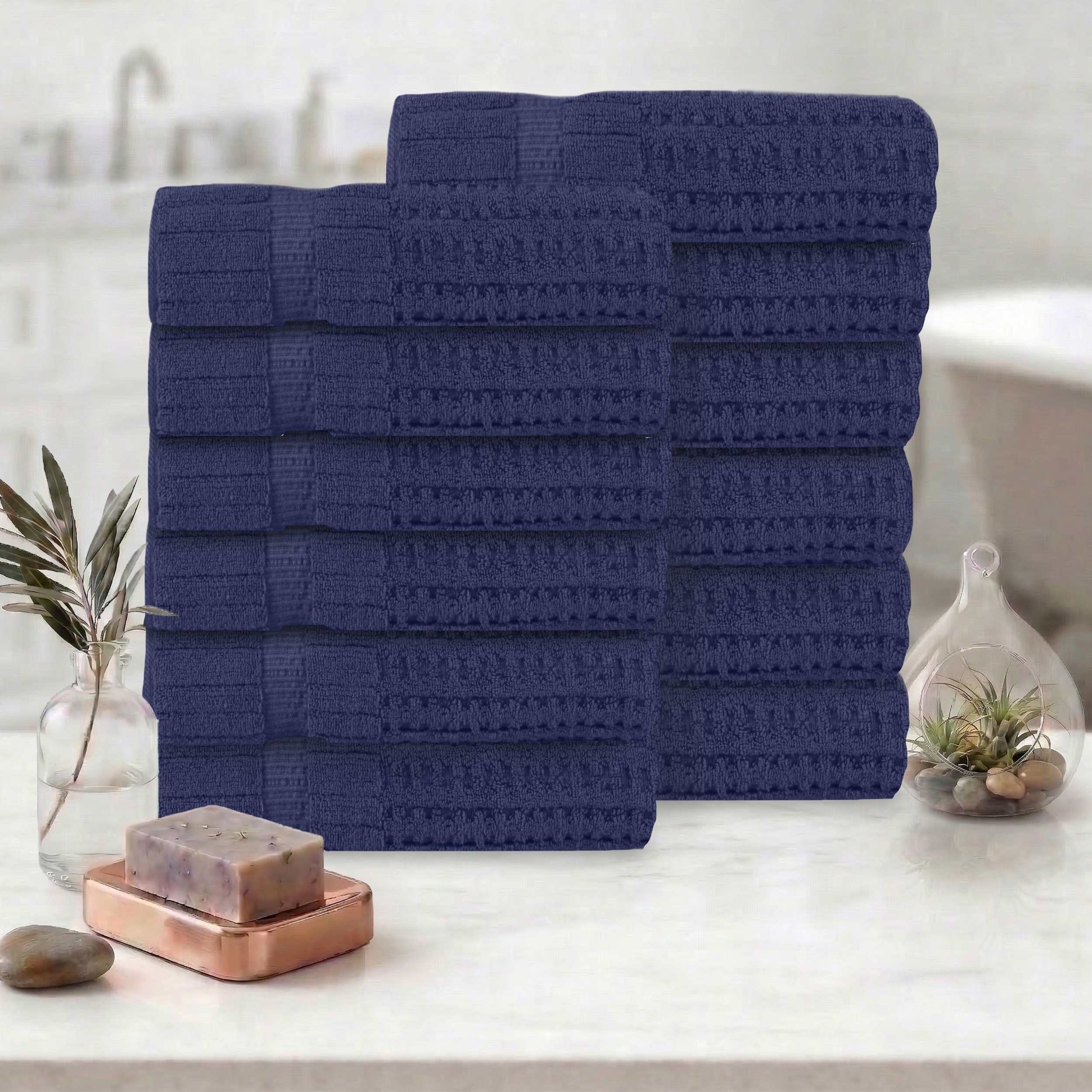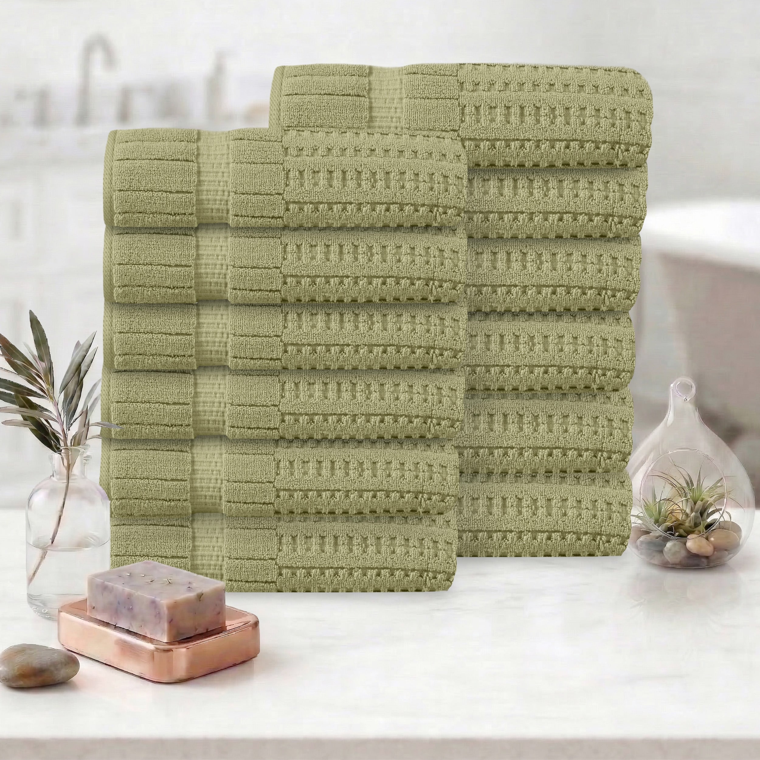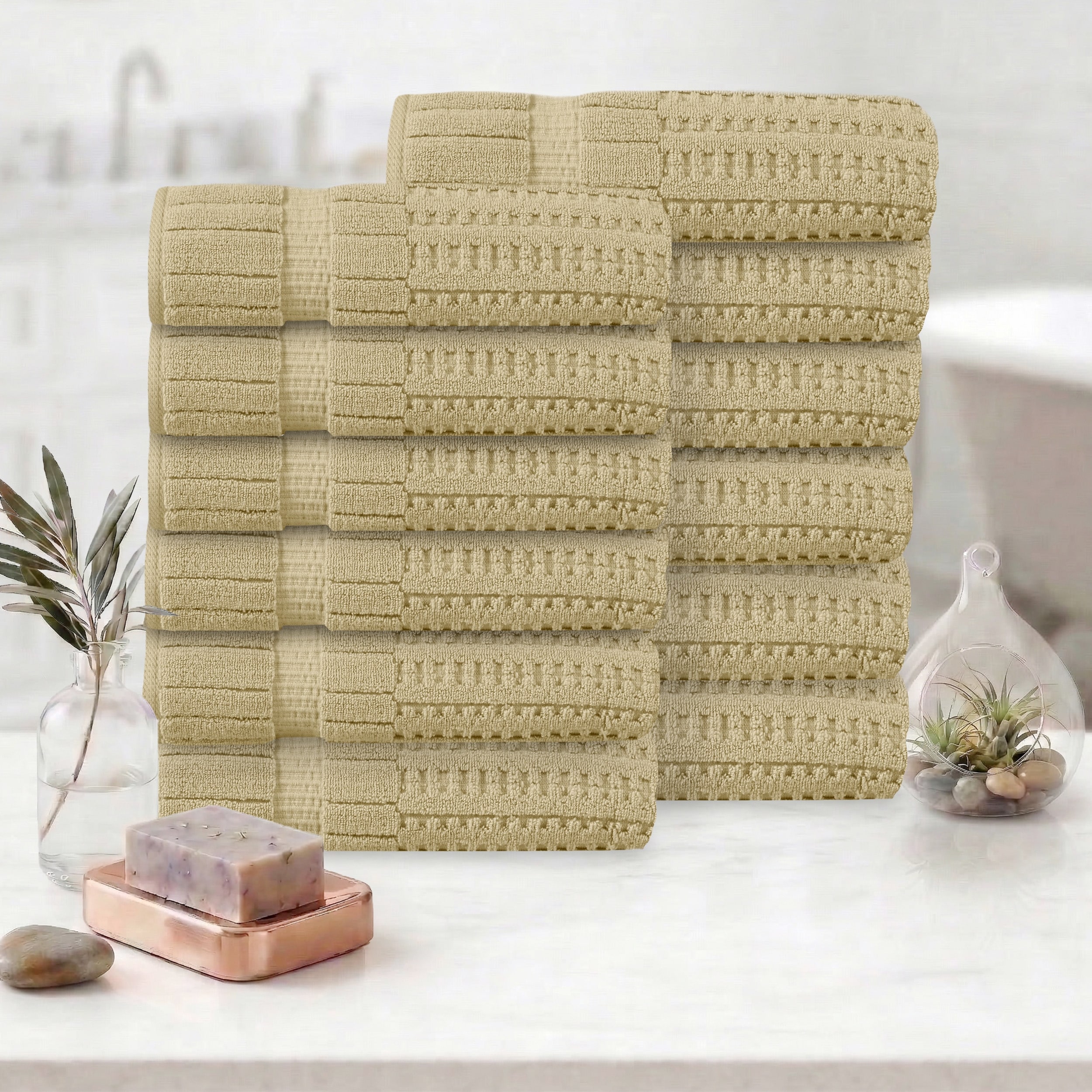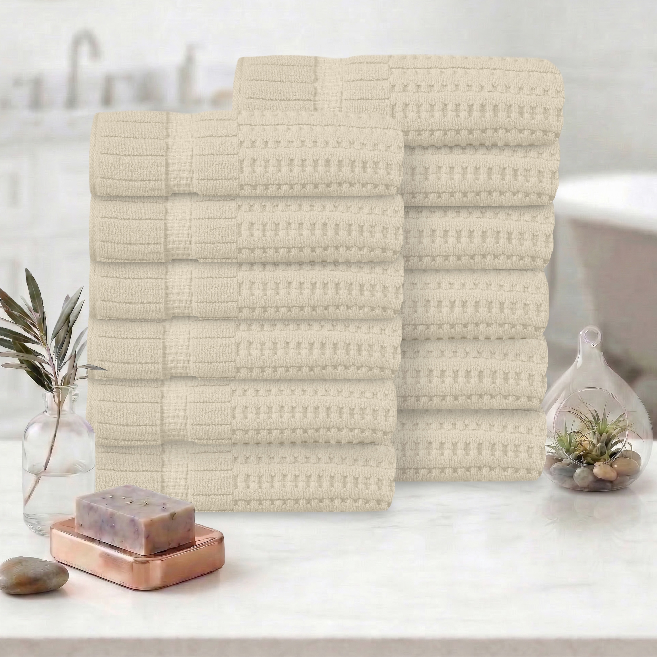 Linery & Co. Cotton Diamond Waffle Texture Bath Towels