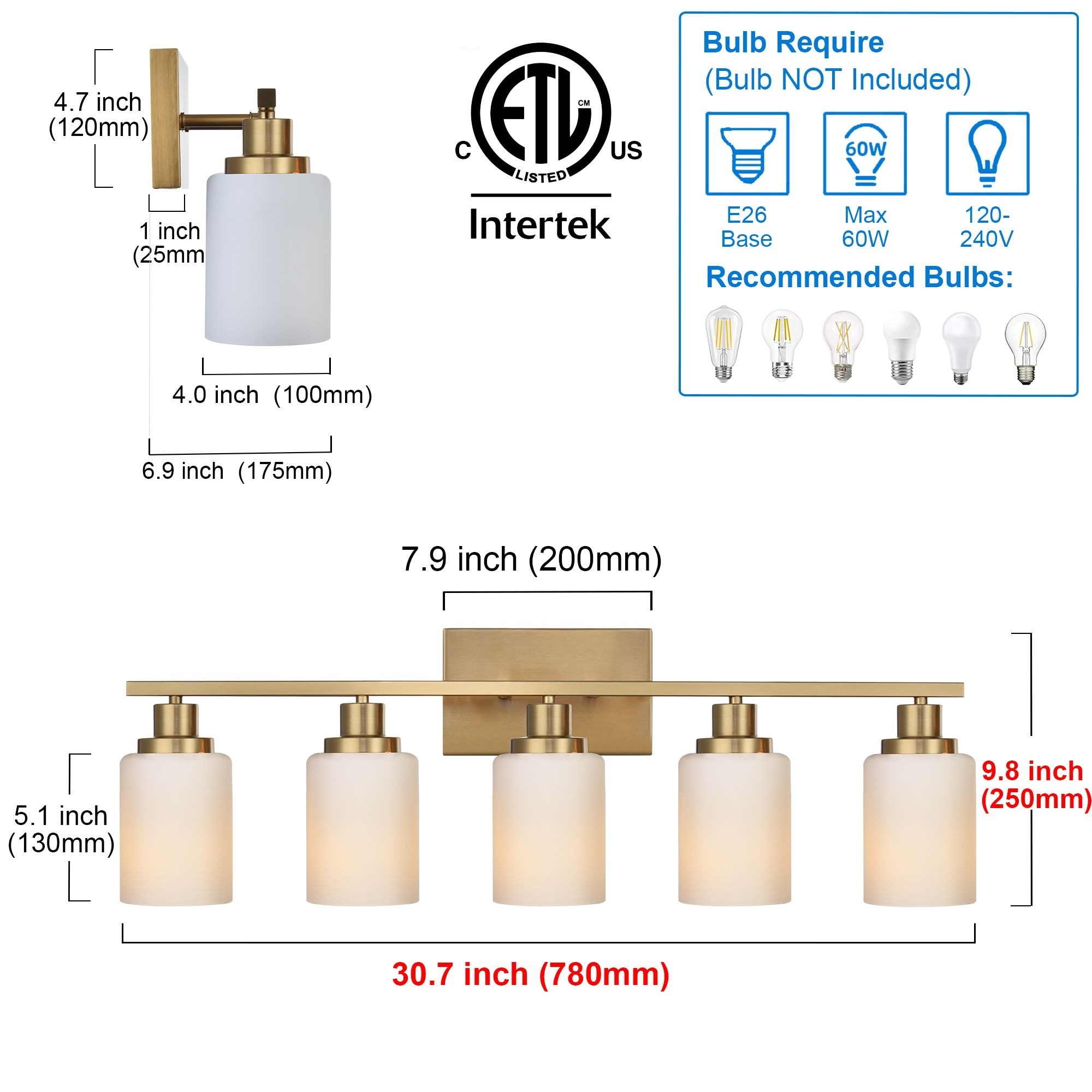 5-Light Bathroom Vanity Lights, Wall Mounted Light for Bathroom