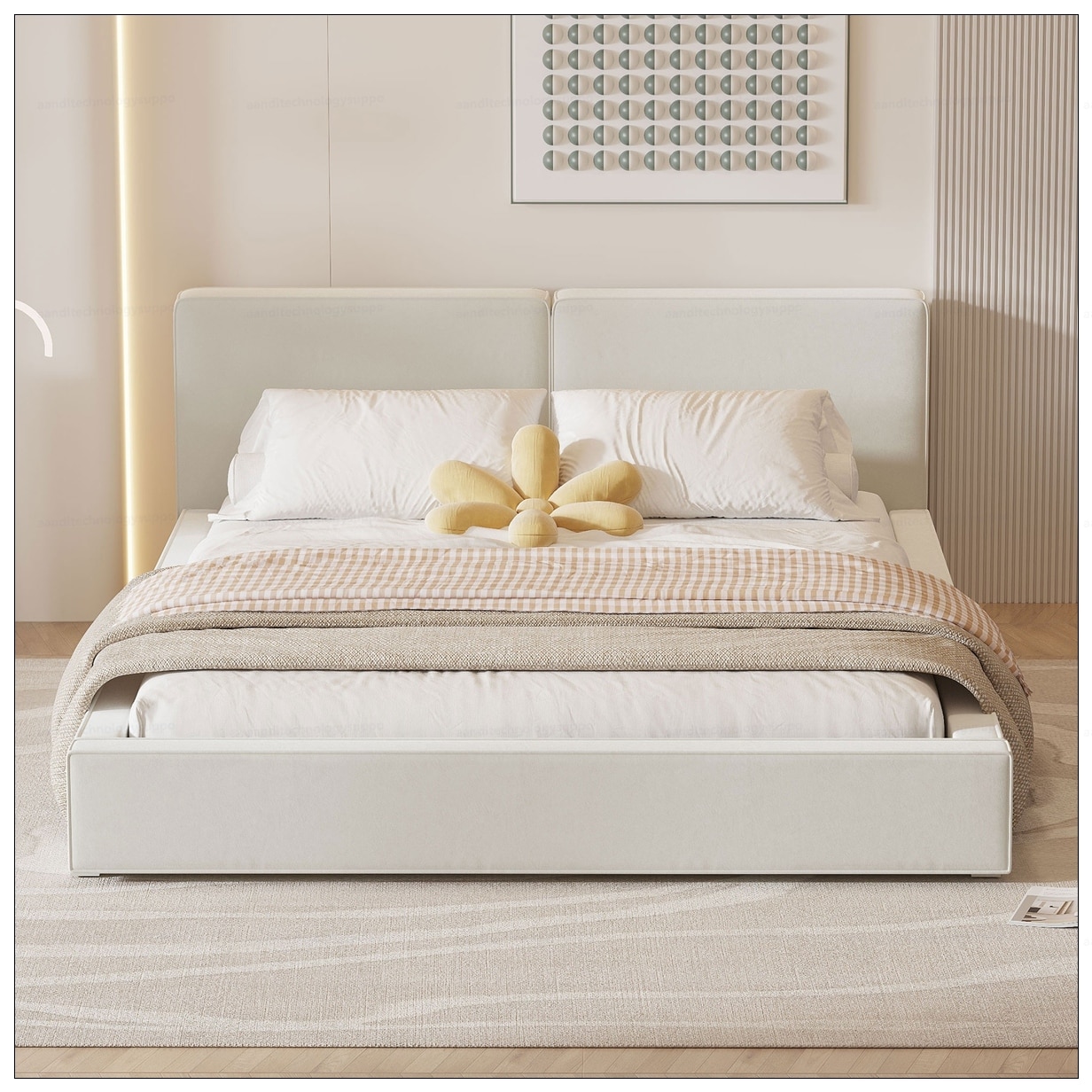 Furniture of America Gail Modern White Boucle Adjustable Queen-Size Platform Bed