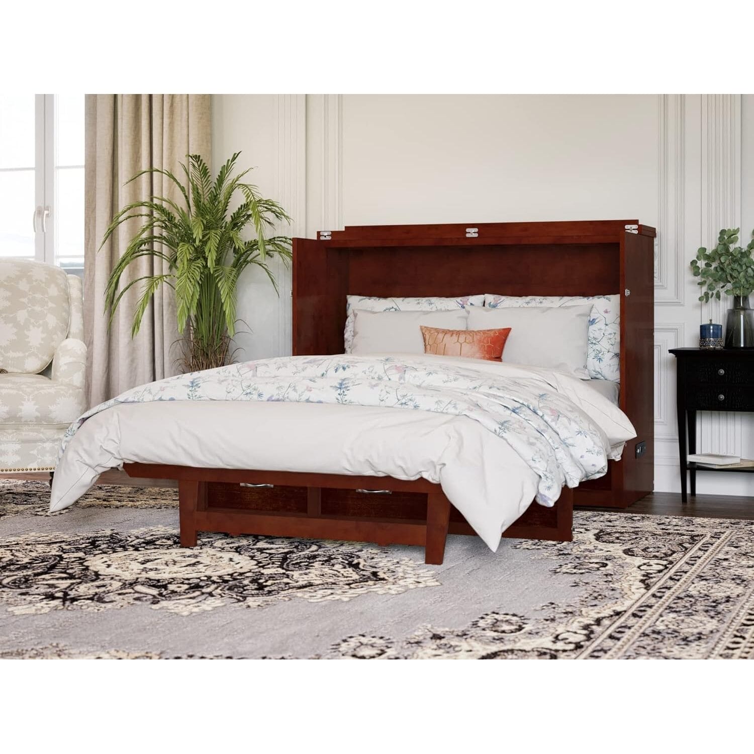 Solid Wood Murphy Bed Chest - Full Size Folding Bed - Space Saving Furniture - Walnut Finish