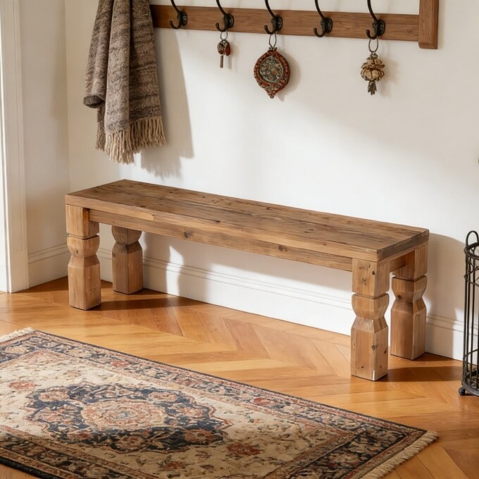 Description: Bring rustic charm to your home with our Solid Wood Entryway Shoe Bench. Its natural grain and knots make it a classic yet functional addition to any entryway, hallway, or dining area.