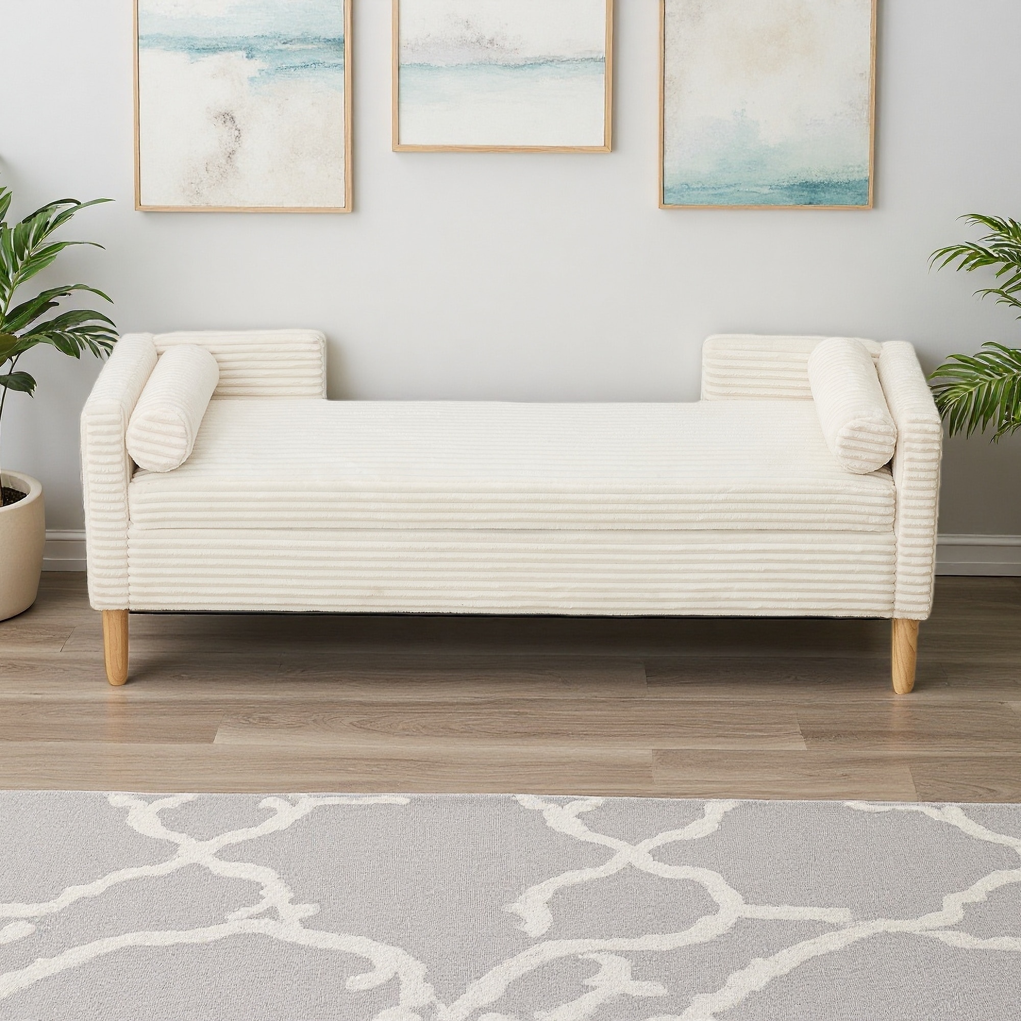 65.35"L Corduroy Storage Bench with Armrests, Bolster Pillows & Solid Wood Frame