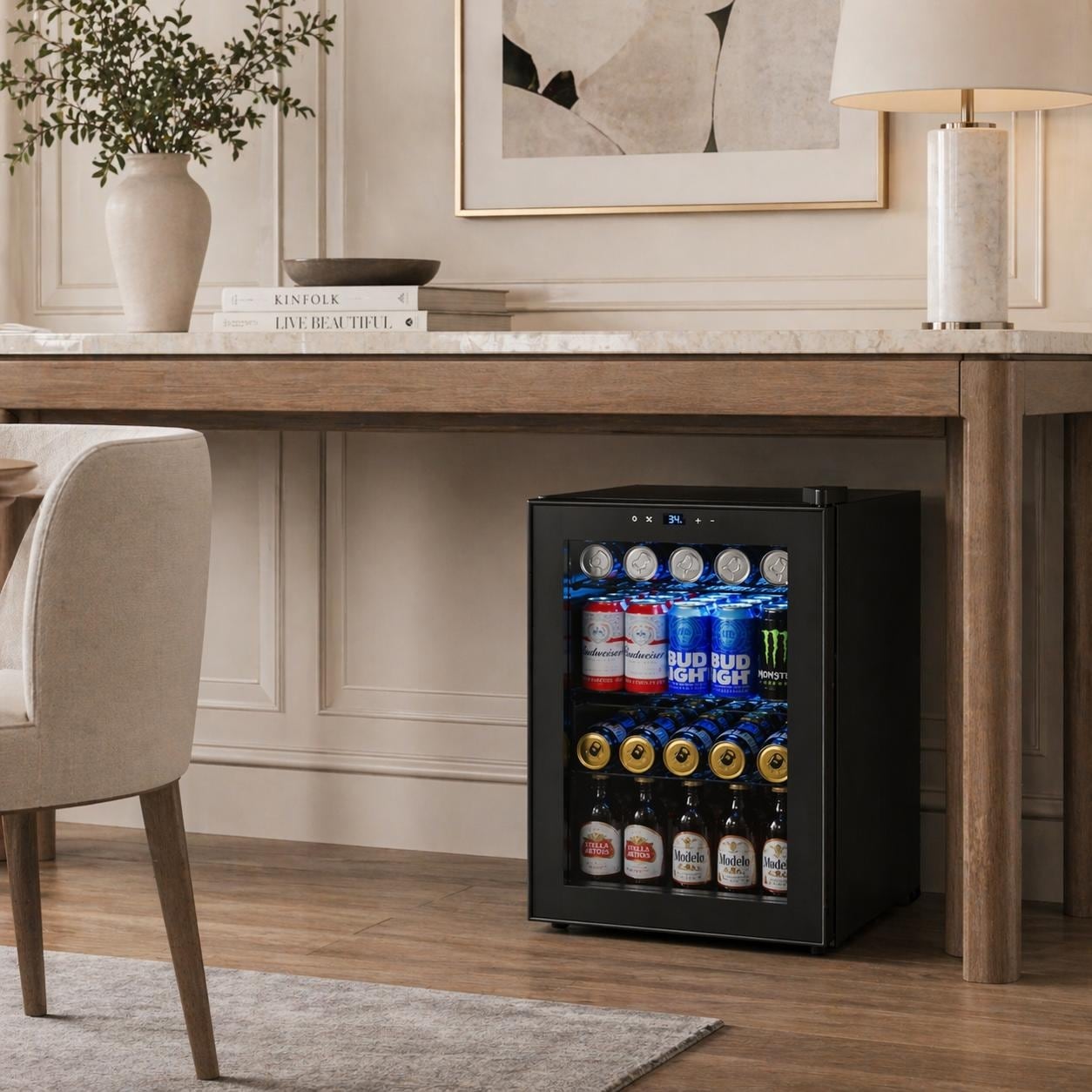 The Yeego Beverage Refrigerator brings a refined balance of form and function, offering a sleek, compact design that fits effortlessly into kitchens, home bars, or entertainment spaces.
