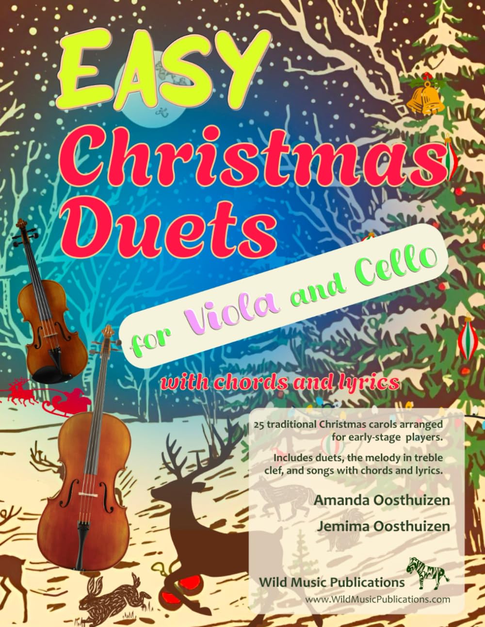 Easy Christmas Duets for Viola and Cello: 25 traditional Christmas Carols arranged for early-stage players with tune in treble clef, chords and lyrics