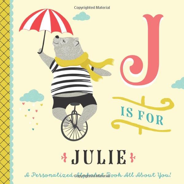 A Personalized Alphabet Book with Julie’s Name! A is for amazing, that’s Julie in every way! B is for the special way you brighten up each day. C is for your courage. You don’t fear what to do. D is for your daring. You always carry through. Julie is your pride and joy—and