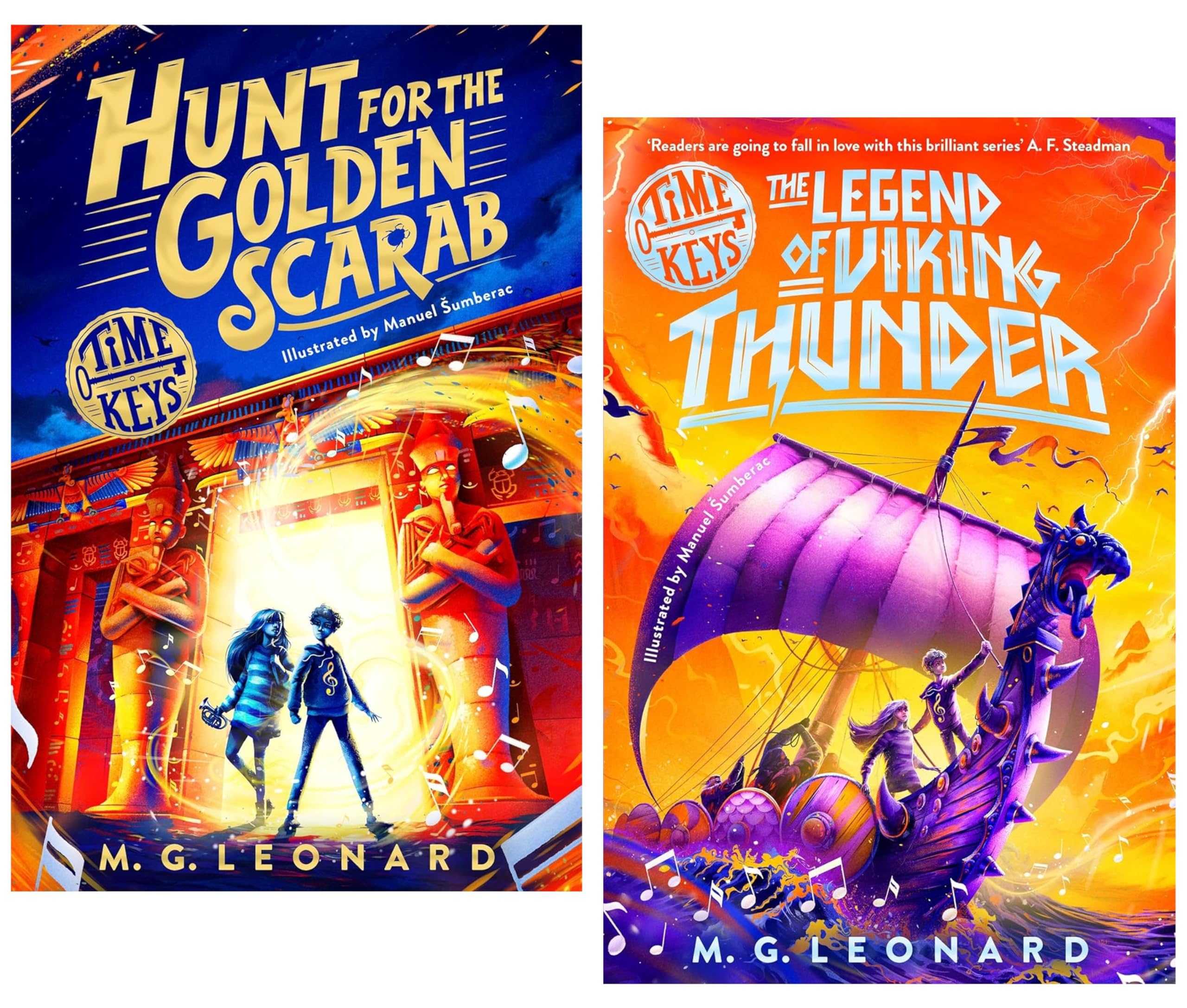 Time Keys Series by M. G. Leonard Illustrated 2 Books Collection Set (Hunt for the Golden Scarab & The Legend of Viking Thunder)