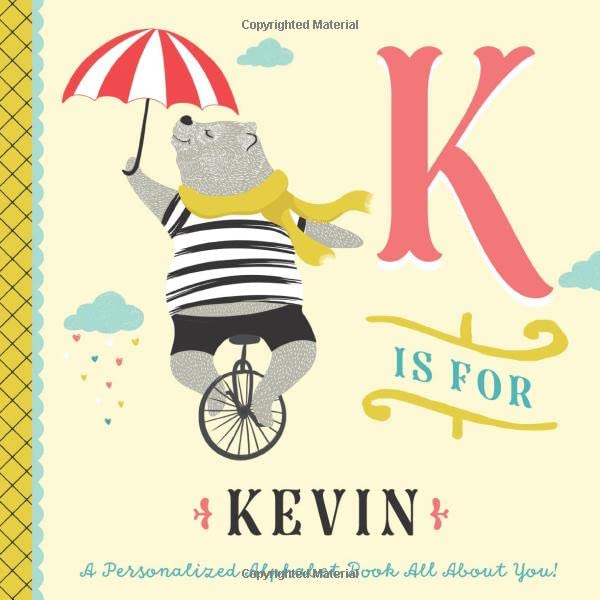 A Personalized Alphabet Book with Kevin’s Name! A is for amazing, that’s Kevin in every way! B is for the special way you brighten up each day. C is for your courage. You don’t fear what to do. D is for your daring. You always carry through. Kevin is your pride and joy—and