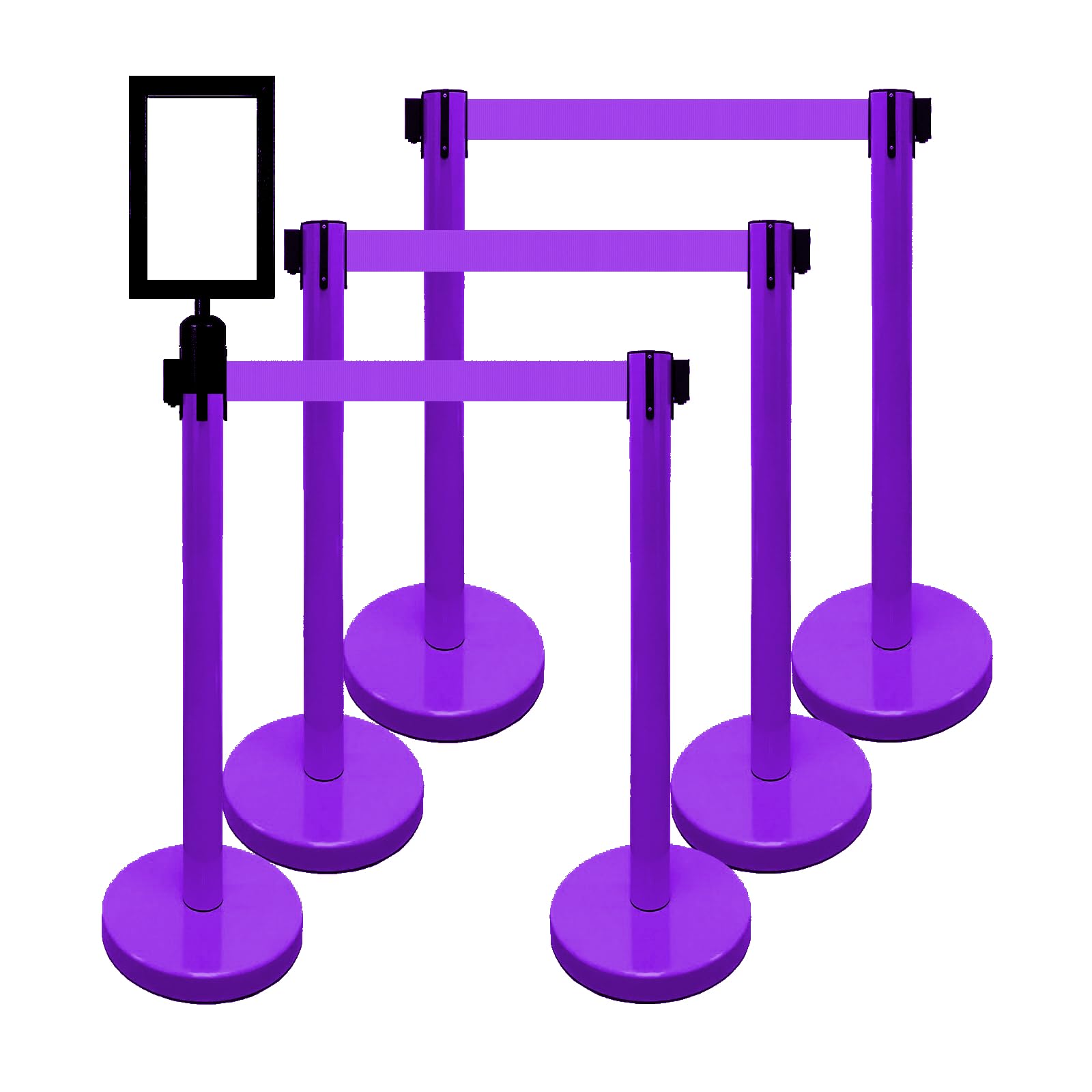 VIP Crowd Control Retractable Belt Queue Safety Stanchion Barrier Set, 36" Ht, 78" Belt + Wall Bracket (6 Pur Posts Pur Belt + SFrame + WBracket)