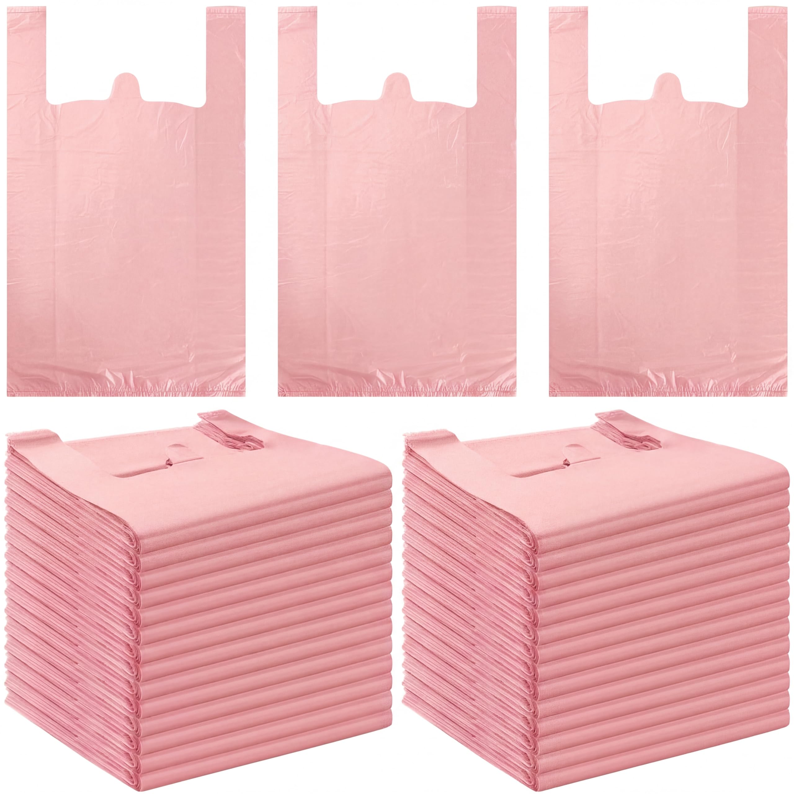 Rich in Quantity: you will receive 200 pieces of pink plastic t shirt bags with handles, which can be applied as storage bags, retail bags, grocery plastic bags, shopping bags, takeout bags, gift bags, snack bags, garbage bags and more, sufficient quantity, enough for small businesses Suitable Size: