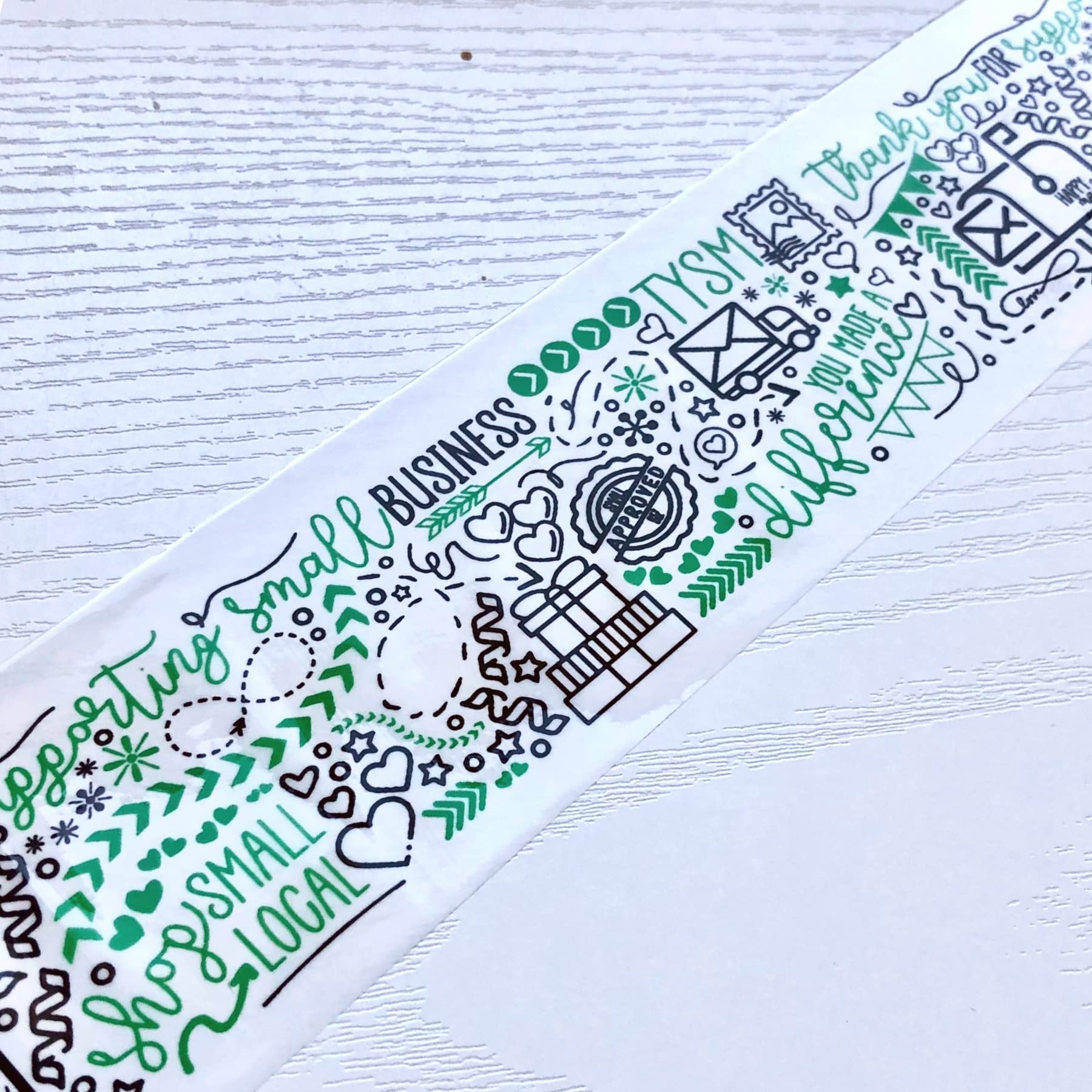 This fun shipping tape was designed with small business owners in mind! As a business owner myself, I struggled to find cute, durable packing tape at a reasonable price - so I decided to make my own! Each roll of tape measures approximately 2" wide and is 1.9 mil thick. This tape is strong enough to