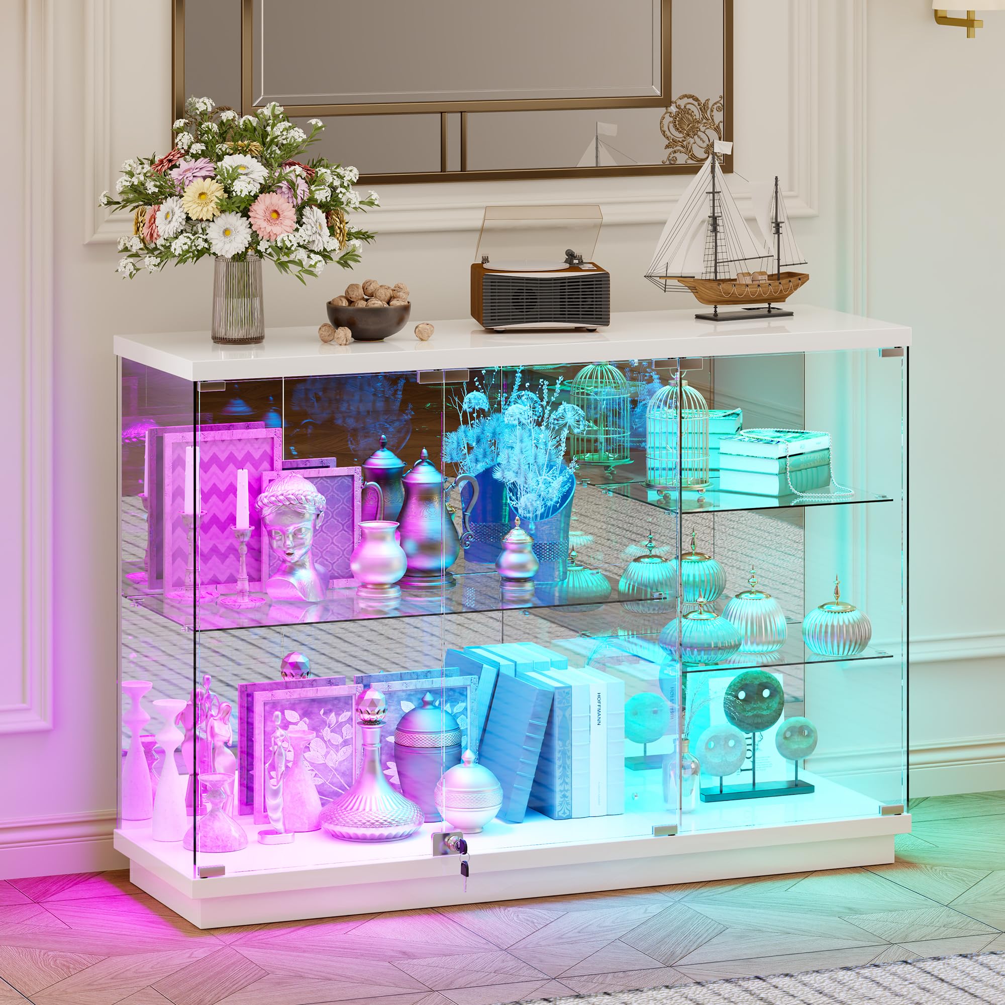 HNEBC 47.2" W Display Cabinet - with Lockable Glass Door,5-Tier Glass Display Case with 12 Lights Modes for Collectibles,Lighted Cuiro Cabinet with