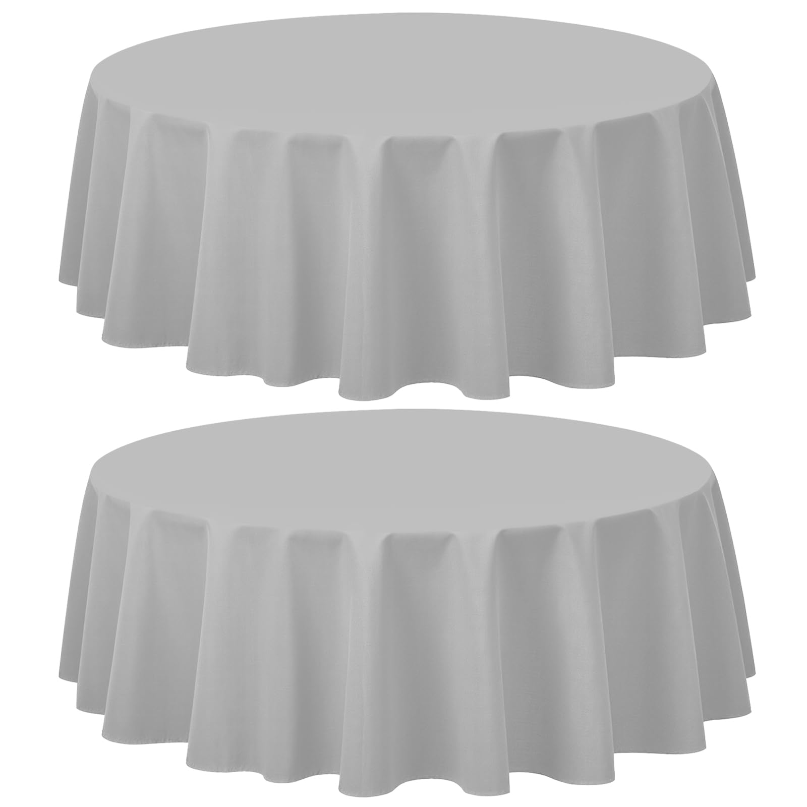 CXPSINC 2 Pack Premium Disposable Plastic Tablecloth 84" Round Table Cover for Birthdays Weddings Christmas Anniversary (Silver Grey)