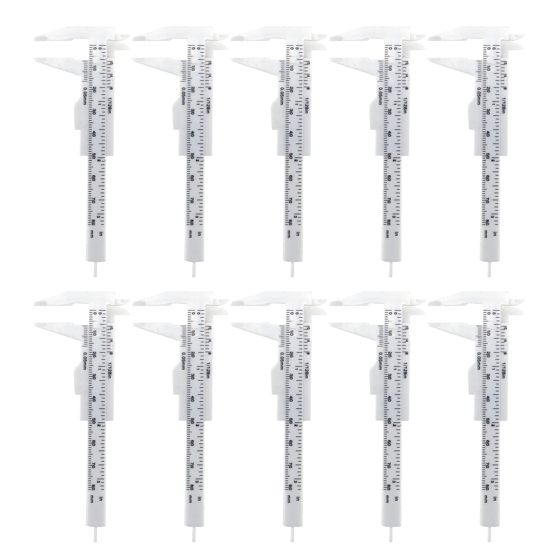 Pastlla 10pcs Plastic Vernier Caliper Mini Plastic Caliper Double Scale Measuring Tool for Student Jewelry Eyebrow Stencil 0-80mm/0-3.15 Inch White