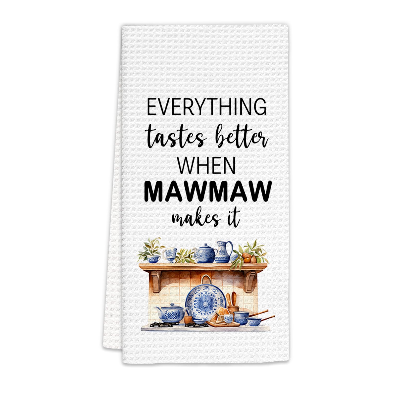 FIicy Mawmaw Gifts Kitchen Towels, Gifts for Mawmaws Dish Towels, Mawmaws Gift from Grandkids, Everything Tastes Better When Mawmaw Make It Decorative