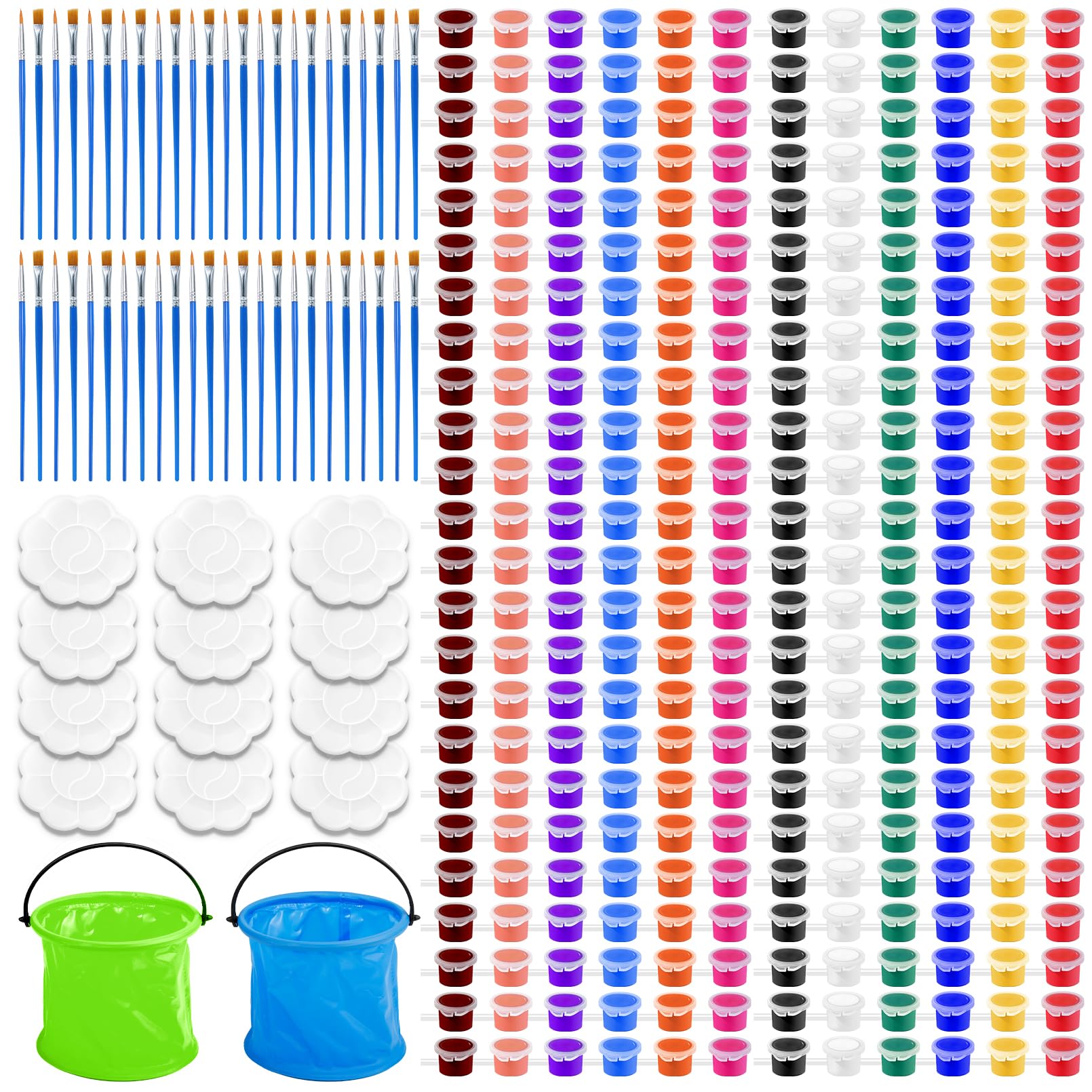 Extrapins Set of 24 Washable Paint Sets,Acrylic Paint Set,24 Paint Pots in 12 Colors,48 Pcs Paintbrushes,12 Palettes,2 Folding Bucket,Craft Paint Sets