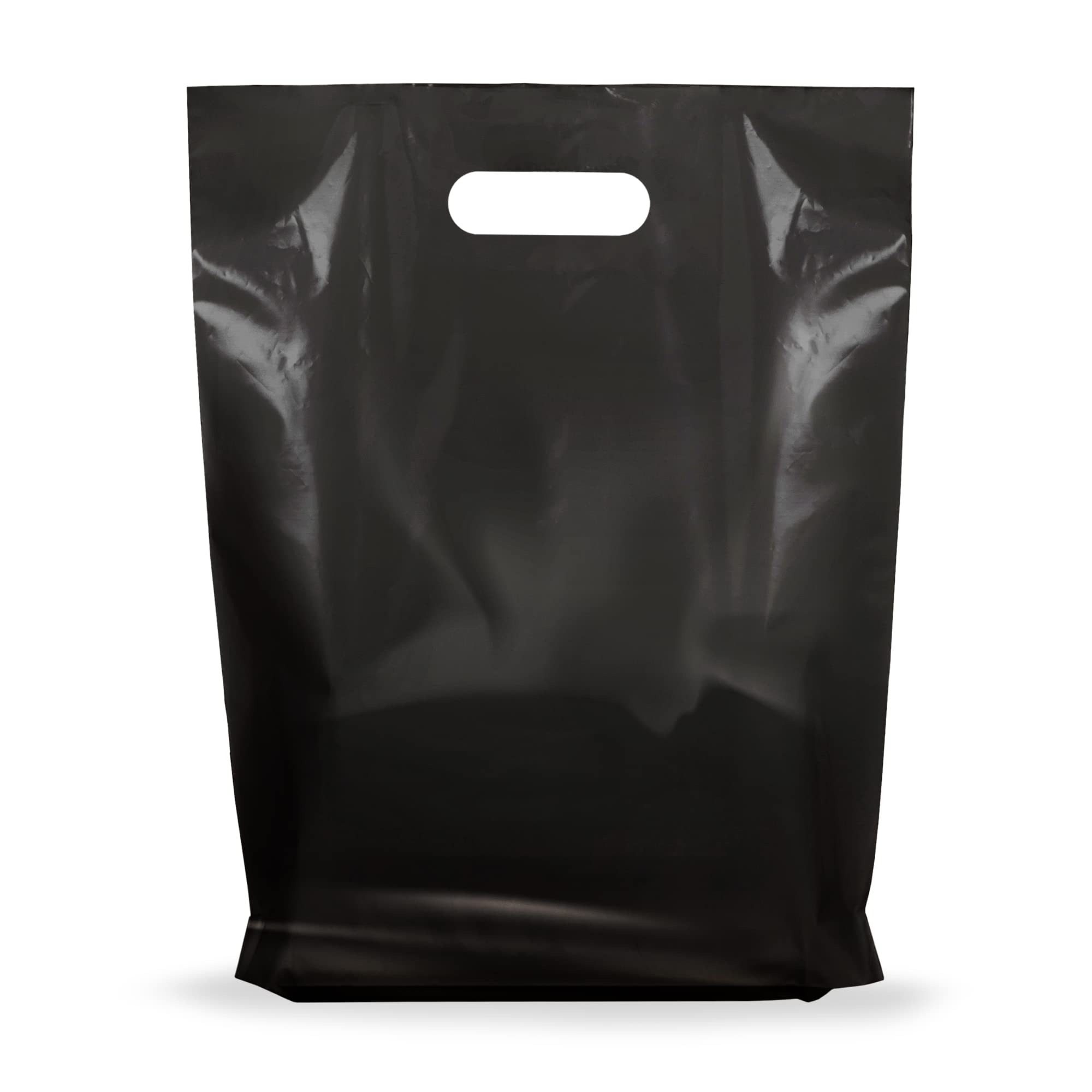 VALUE PACK – 100 Black Plastic Bags – Includes 100 premium black plastic bags per pack, each measuring 12" x 15" with a glossy finish and die-cut handles for everyday retail or event use. BLACK BAGS FOR SMALL BUSINESS – Perfect for boutiques, pop-up shops, salons, and online stores—these bla