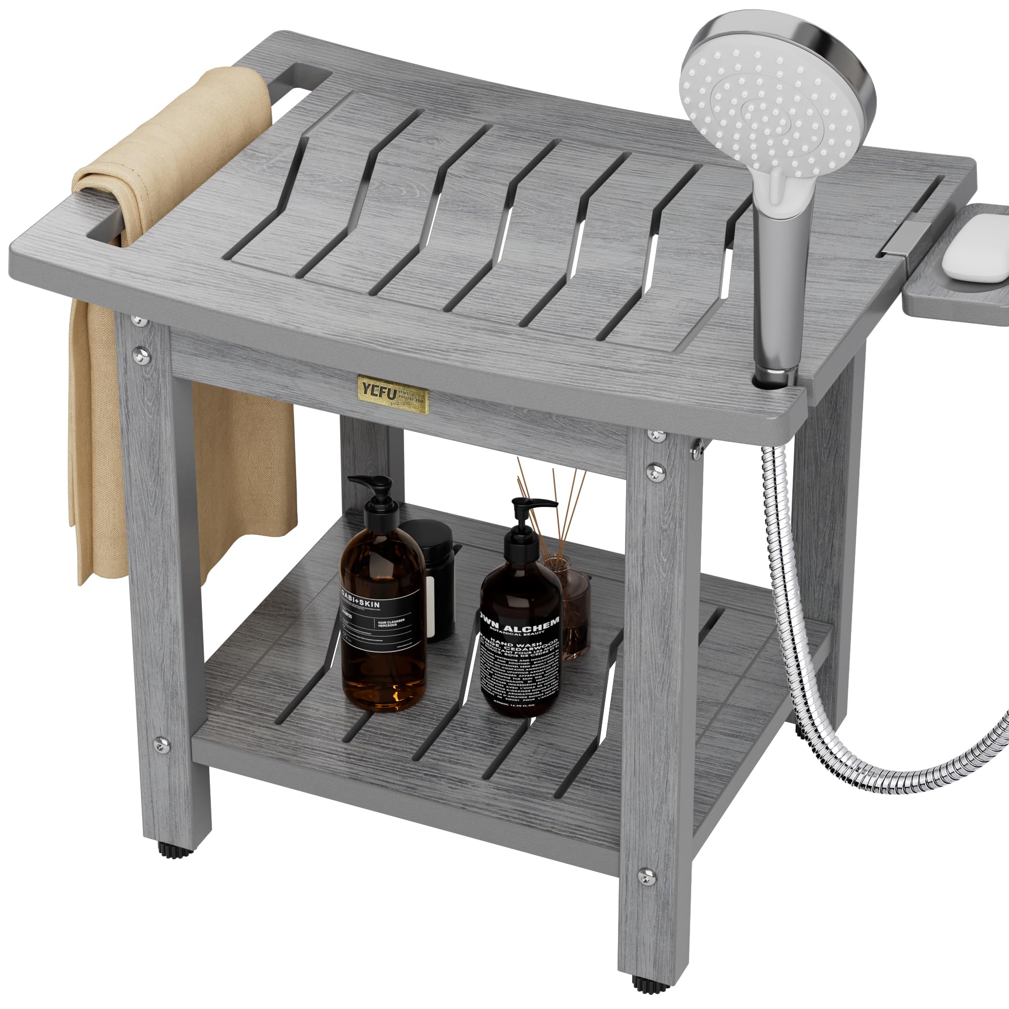 YEFU Shower Chair for Inside Shower: 21 Inch Oversized Waterproof/No Maintenance - Shower Stool with Shelf & Handle 400 LBS - Bathrooms/Outdoor -