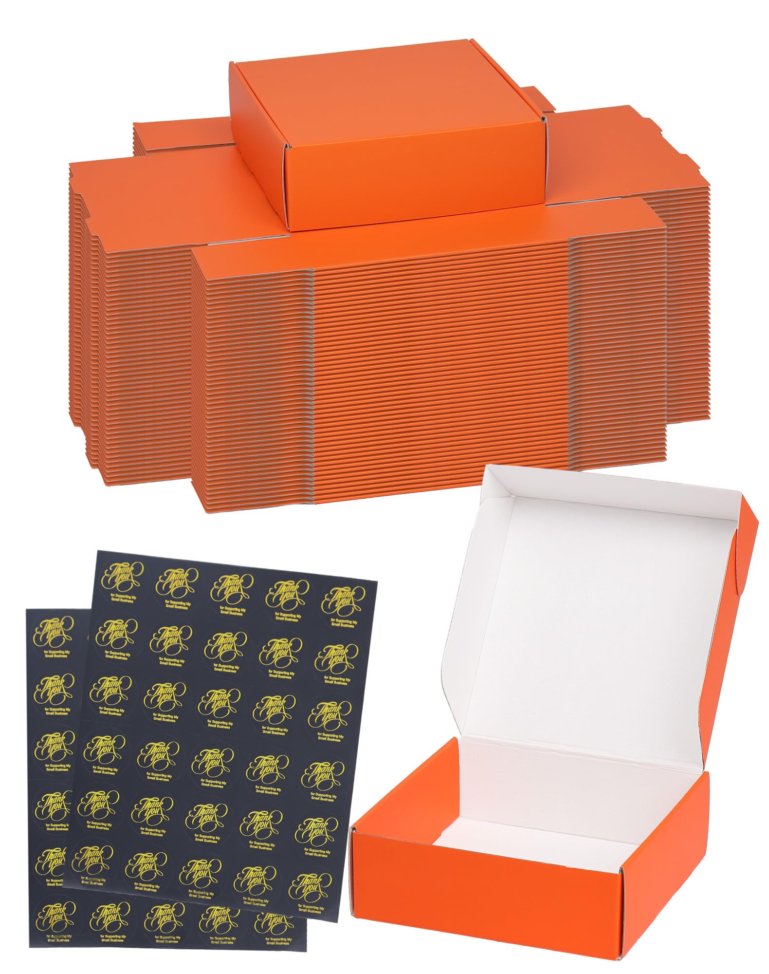 6“x6”x2“ Small Shipping Boxes - Set of 50, Orange Mailer Packaging Boxes for Small Business, Cardboard Boxes for Jewelry Gift Comic Book Bulk