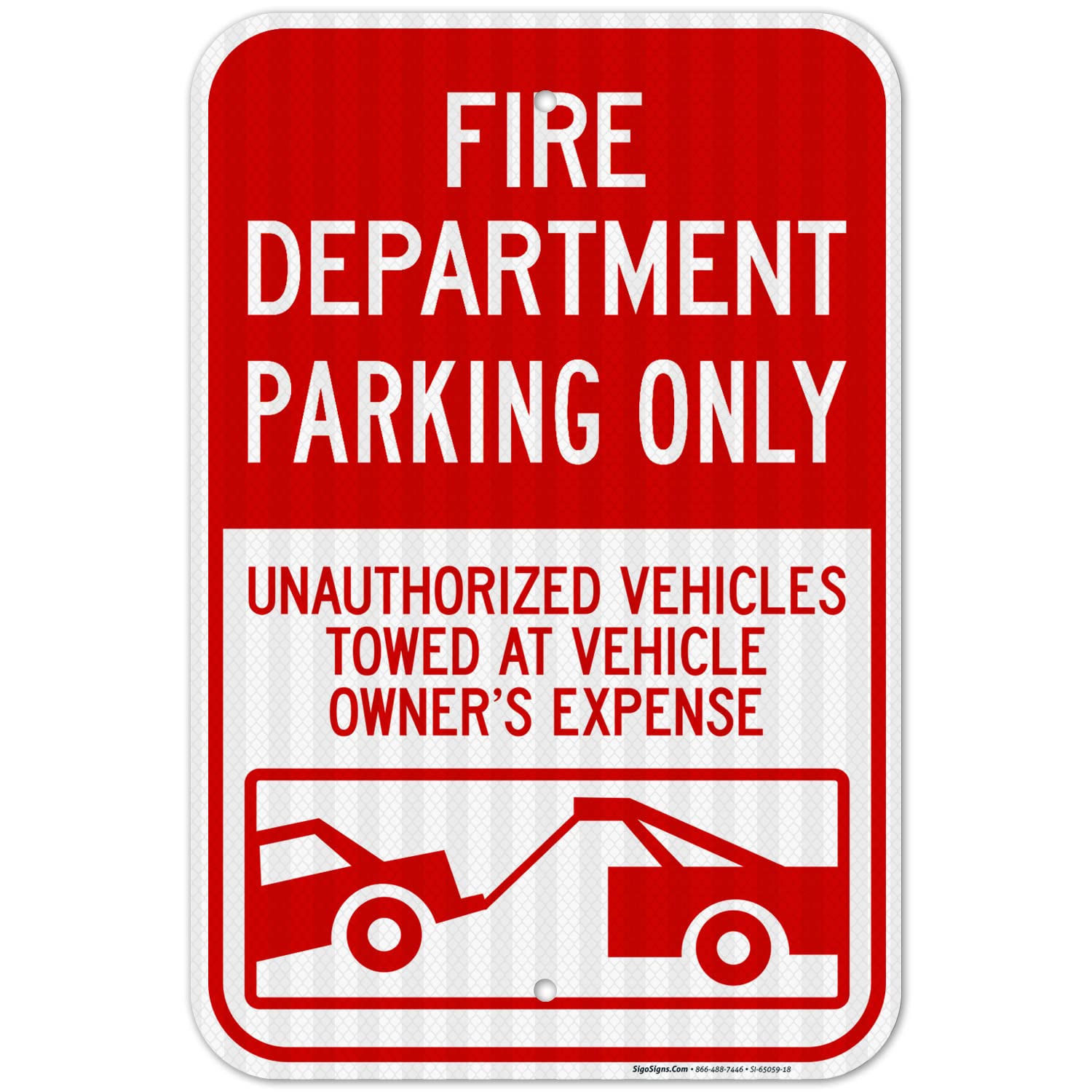 Fire Department Parking Only Unauthorized Vehicles Towed at Owner Expense Sign, 12x18 Inches, 3M EGP Reflective .063 Aluminum, Fade Resistant, Made in
